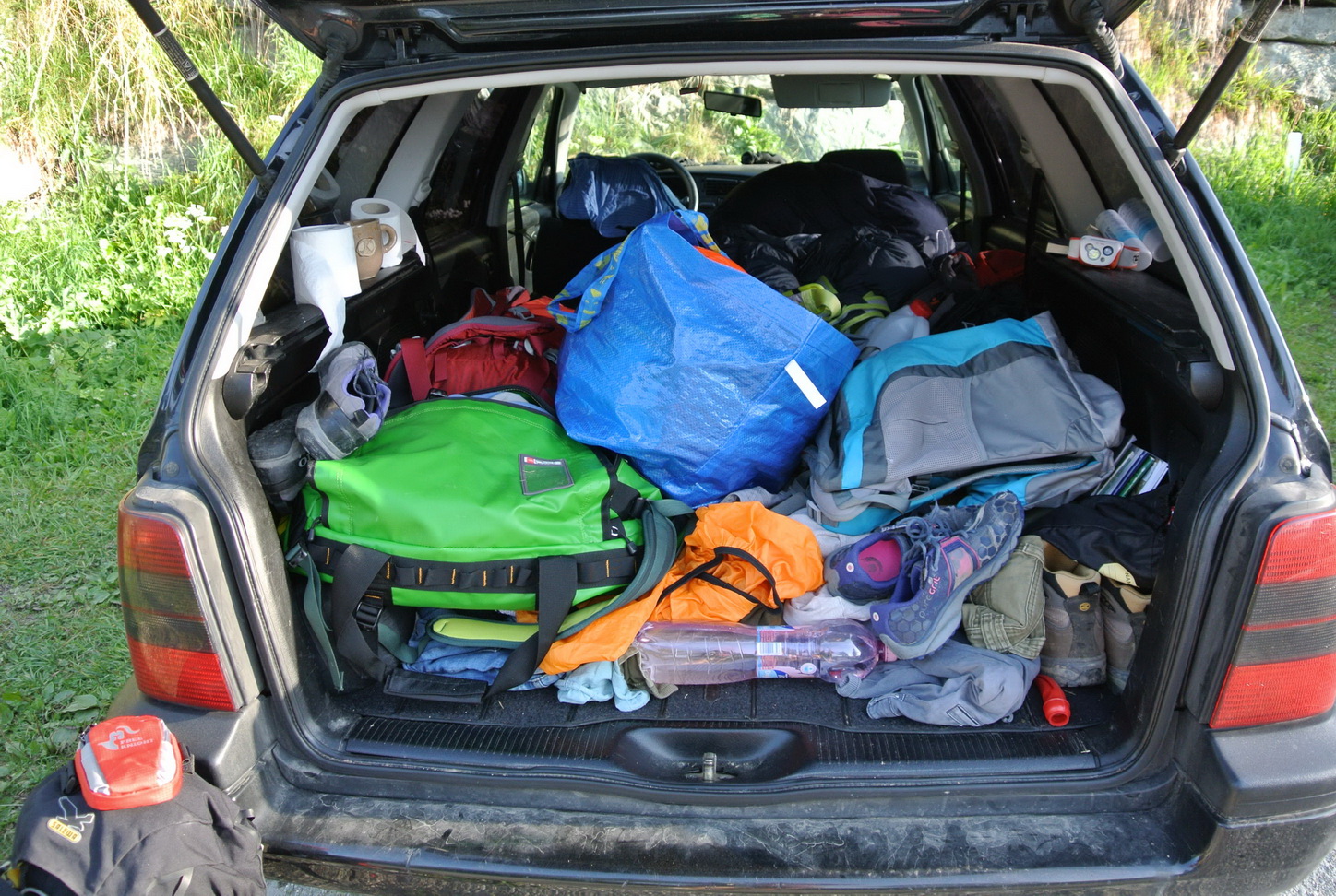 Slnko. Vystiera ku mne svoje fotónové ruky skôr, ako ja vystieram nohy z auta. V reálnom čase to znamená, že je pol 8-mej a ja mám čo robiť, aby som neprespala sľubný deň. Keďže som si v noci nevšimla aj iné možnosti parkovania povyššie, spala som v aute šikmo dole a vznikla pochopiteľná nedokrvenosť hlavy a prekrvenosť chodidiel a z toho vyplývajúce neskoršie spoločenské faux pas. Ale o tom až pri chate.