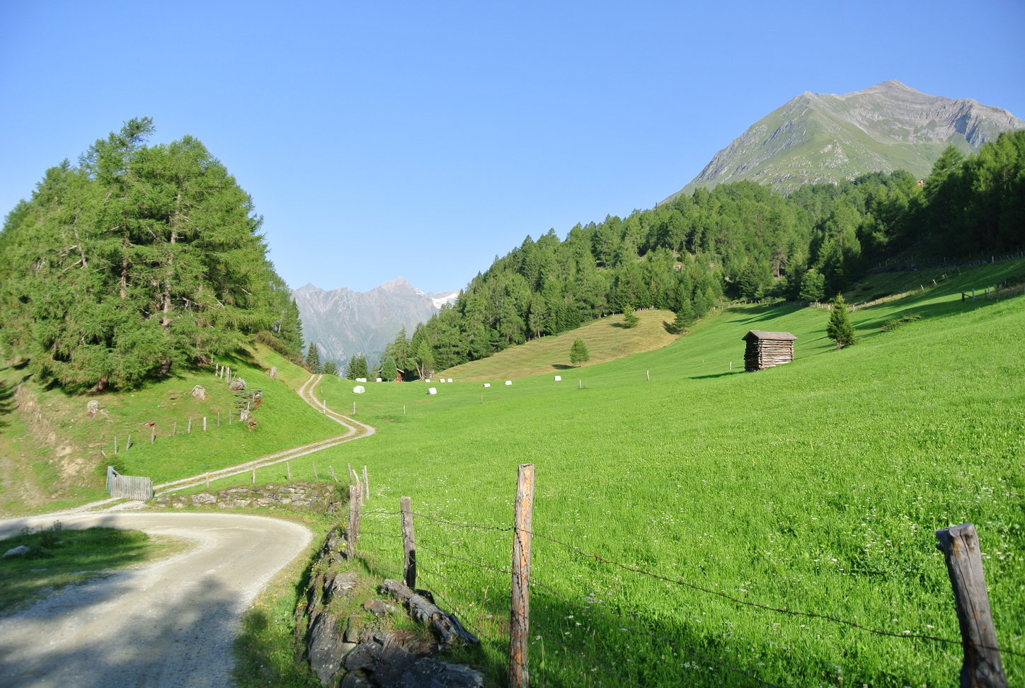 Balím sa ako najlepšie viem. A v tom je niekedy ten... problém. Auto je síce malý kúsok súkromia, ale je v ňom navrstvených tak veľa vecí, že pri balení používam štyri zo štyroch dverí. Z ľahkej mikrogramovej bundy si urobím peňaženku a do jediného vrecka vkladám svoje vreckové na gastroradovánky na chate. Bundu si obliekam? Vraj áno. Vraj. Je 7:50 a nohami už preplietam široký chodník pre 40 kôz, ovcí a kráv, ktorý sa dá pretínať nenápadnými kolmými skratkami. Pastviny, zelené koberce a dotyky slnka ma posúvajú radostne na dno doliny Timmeltal.