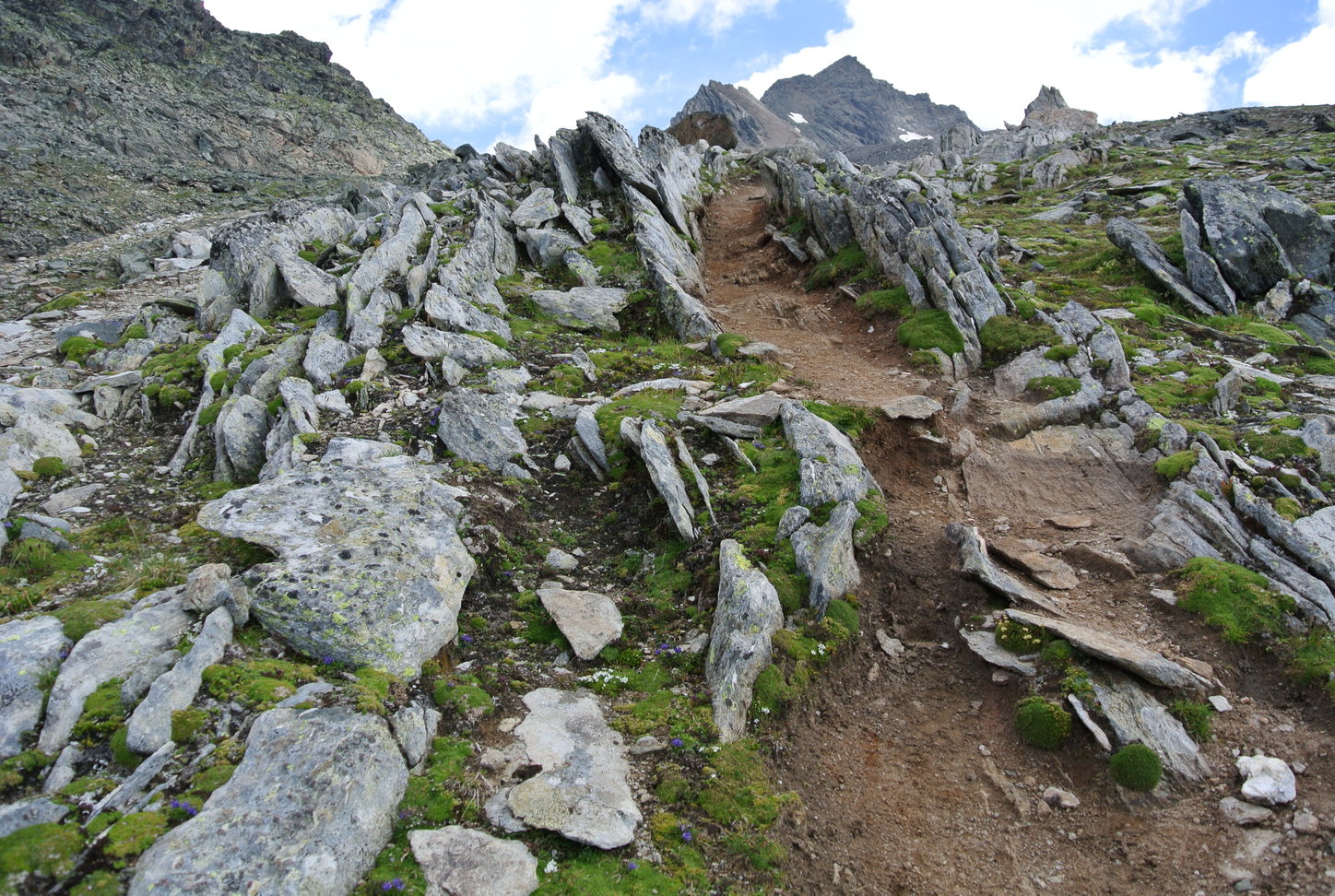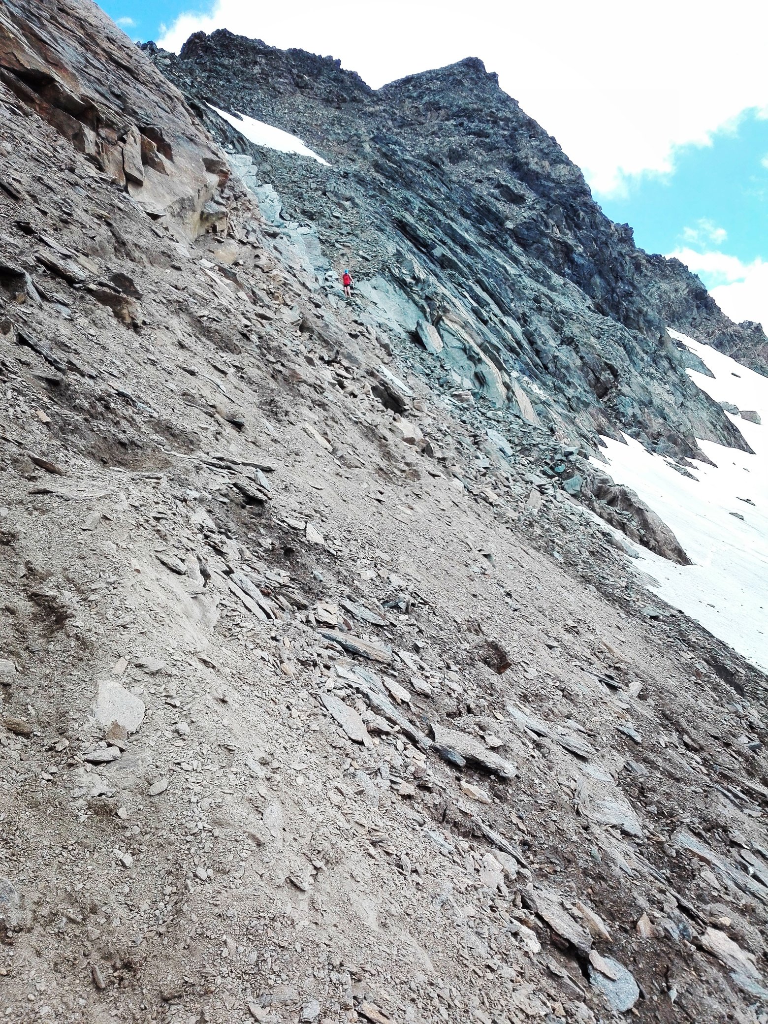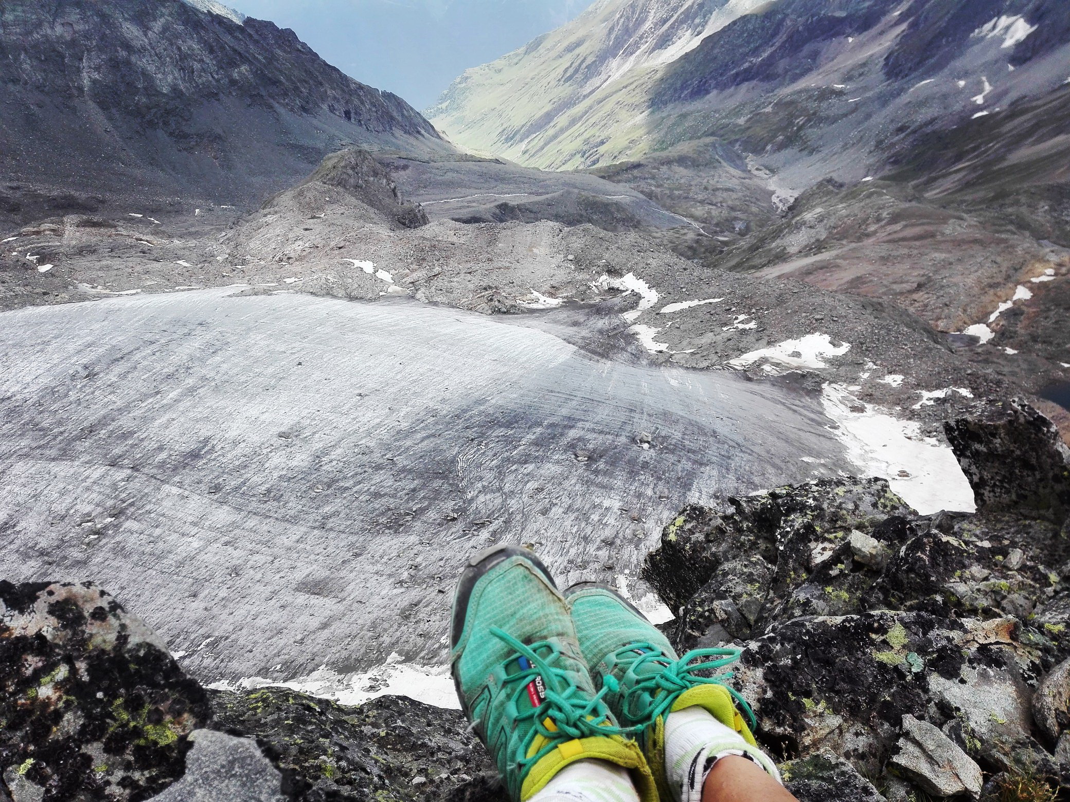 Ked sa váš nezorganizovaný život zorganizuje do malého horského chodníka ťahajúceho vaše nohy dolinou so všetkými jej obmenami, začína to dávať akýsi existenčný zmysel celku. Aj ten, čo nikde nemá miesto, ho zrazu má. Za chatou vypínam hluk v hlave a mením sa na tichého pozorovateľa v pohybe. Ešte kráčam po mäkkej hline a z diaľky vidím Weissspitze, obchádzam malé plieska, zelená farba sa výškou postupne vytráca a všetko sa mení na roztrúsenú, kamennú a naoko tiesnivú krajinu. Zrazu za mnou štrngocú paličky. Ujo. Penzista. Cvála. Chodník orezáva ľavú stranu doliny, vyhupne ma na ďalšej malej terase s plieskom a čaká ma výstup suťoviskom na Wallhorntörl. Ujo v nedohľadne.