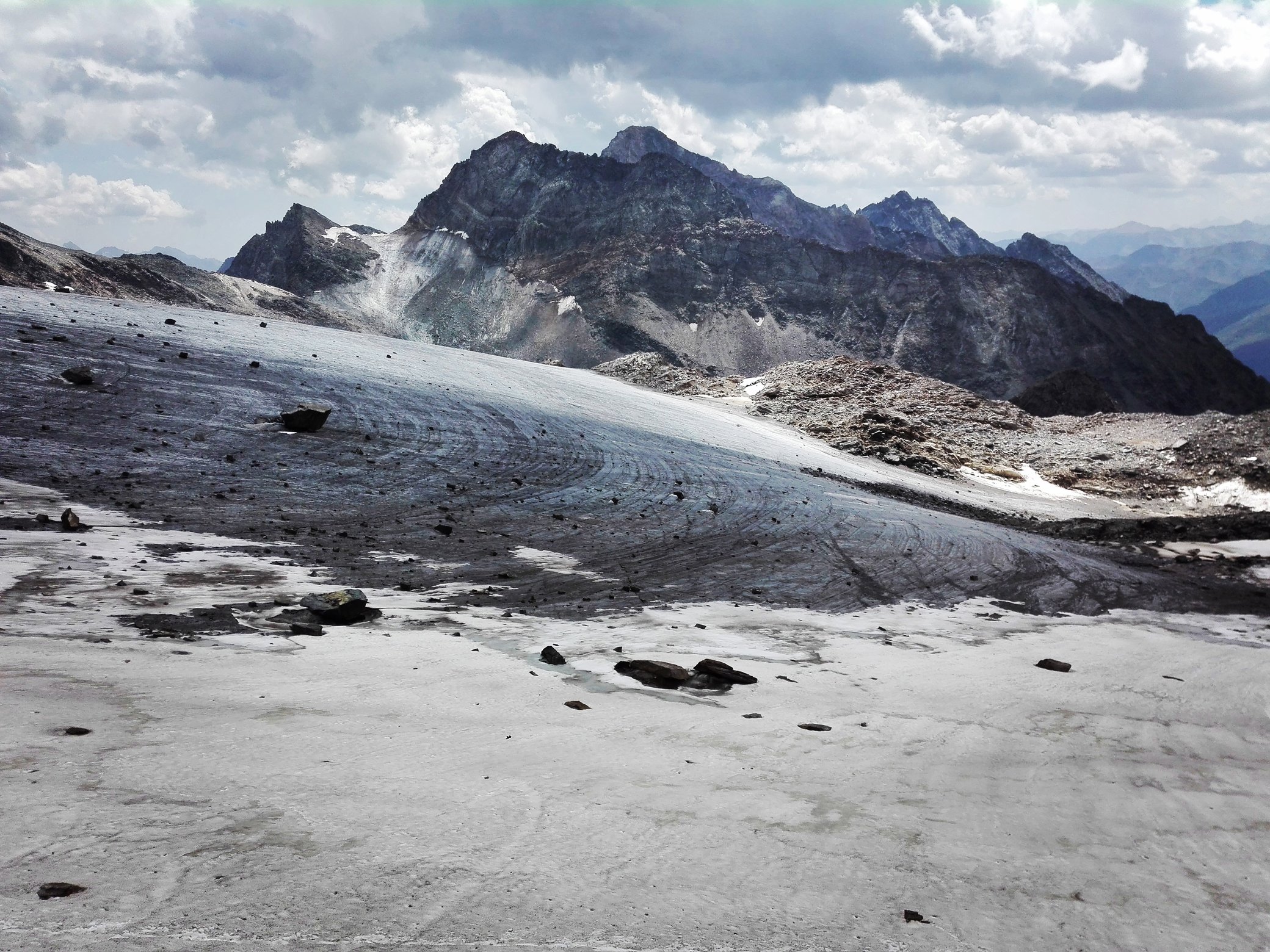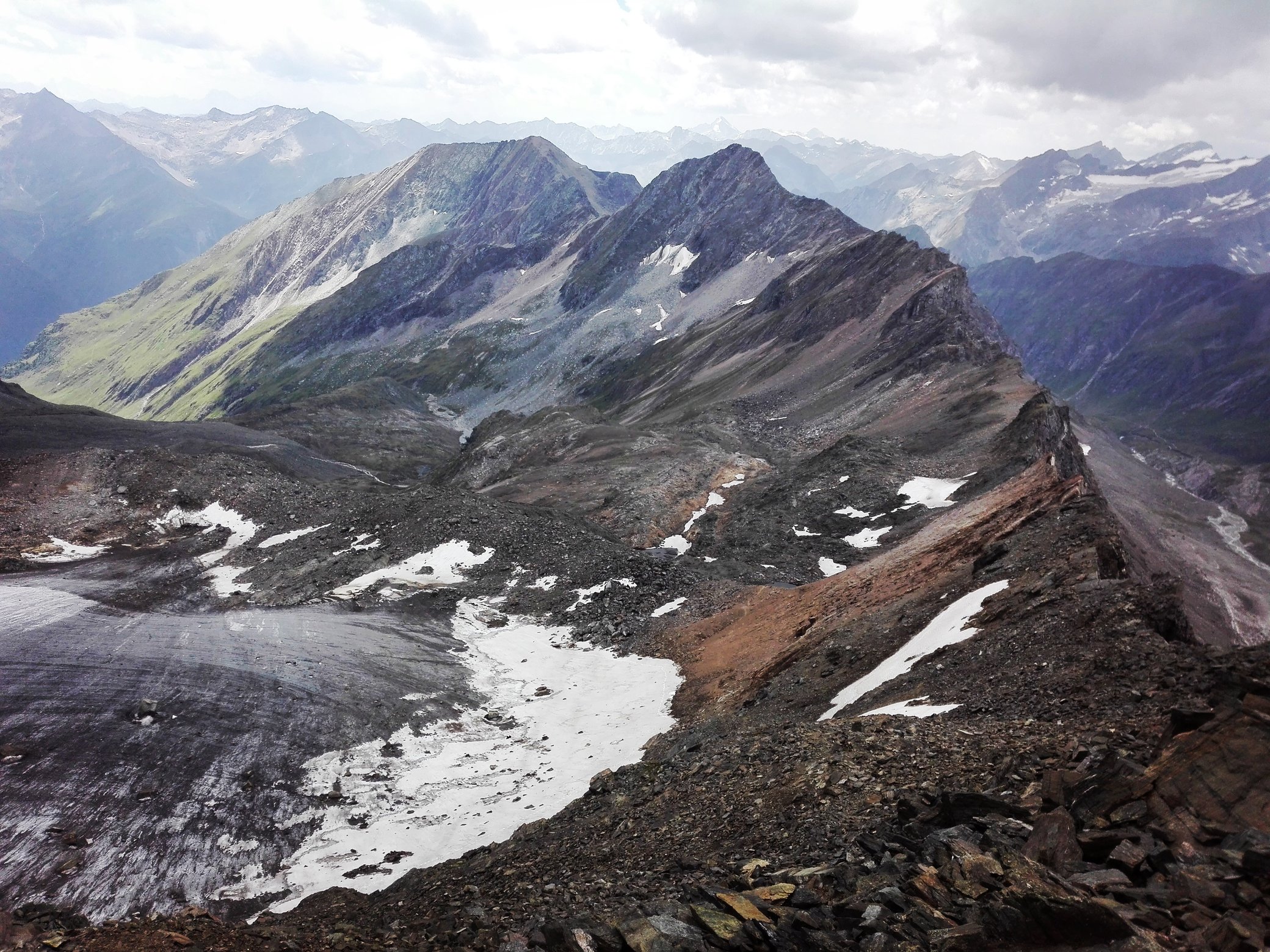 Ostrým suťoviskovým krokom sa hlava zabára do pohybov nôh, pohľad sa plazí a kontroluje roztrúsený život kameňov - jediný možný výhľad. A zrazu, po 100 výškových metroch stojím na malej planine, hlavu mi z krku vystreľujú nedohľadné obzory úplne iného sveta. Ľadovcové more sa preplieta pomedzi špicaté vrcholy mien, ako je napr. Grossvenediger.