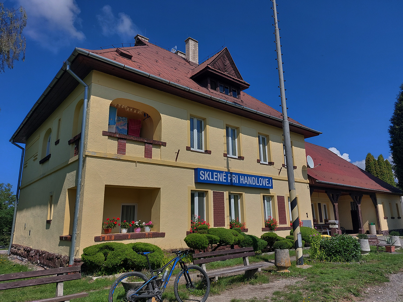 Nad Janovou Lehotou som z doliny preliezol popod Trasľavý vrch na druhú stranu, až skoro ku hlavnej (zo Žiaru do Handlovej) a napojil som sa na parádnu, šotolinovú „strada bianca“. Na tú som bol najviac zvedavý, kvôli nej som sem išiel – a nesklamala. Ozaj krásne jazdenie hore – dole lesmi až nazad do Skleného. Jediný krátky asfaltový úsek pred Remätou a jediný prudší stupák za ňou. Obchádzanie Skleného po lúkach som už neriešil, strihol som to cez dedinu, lebo akurát som mal pár minút do vlaku. Ale dalo by sa to jednoducho a na záver efektne okoreniť vyhliadkou z Bralovej skaly. Veď ale - možno nabudúce :-)