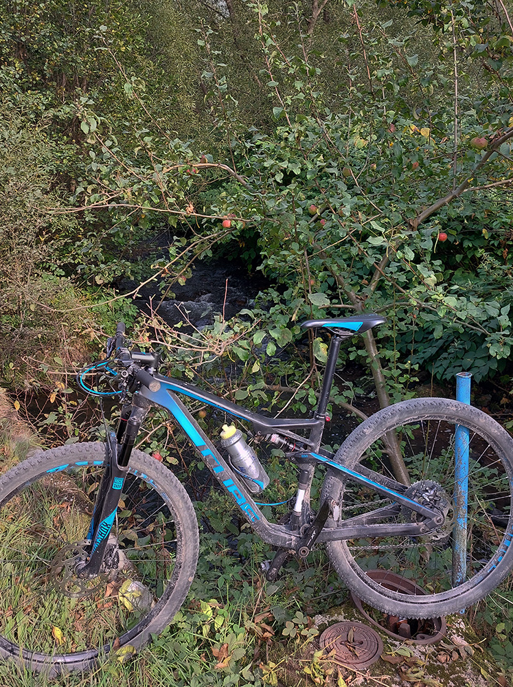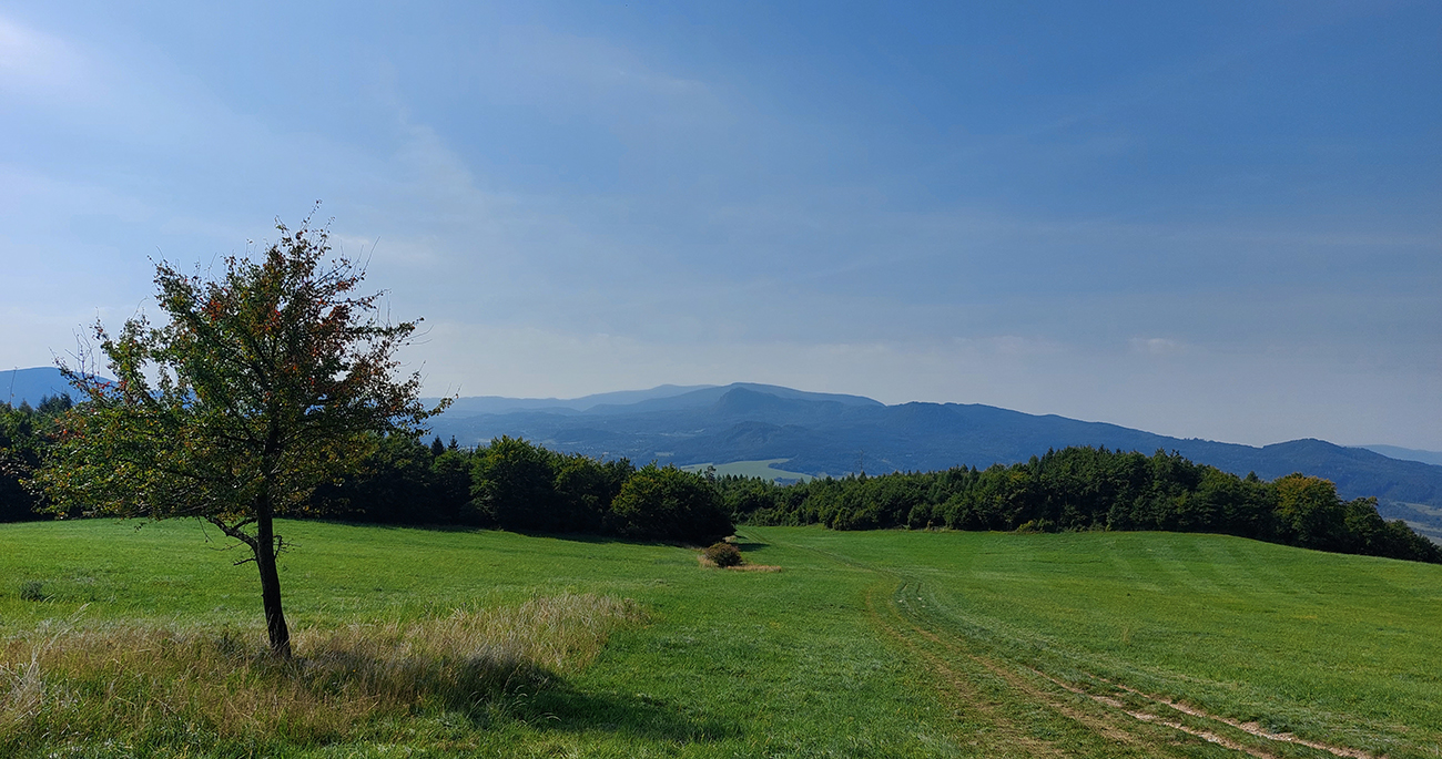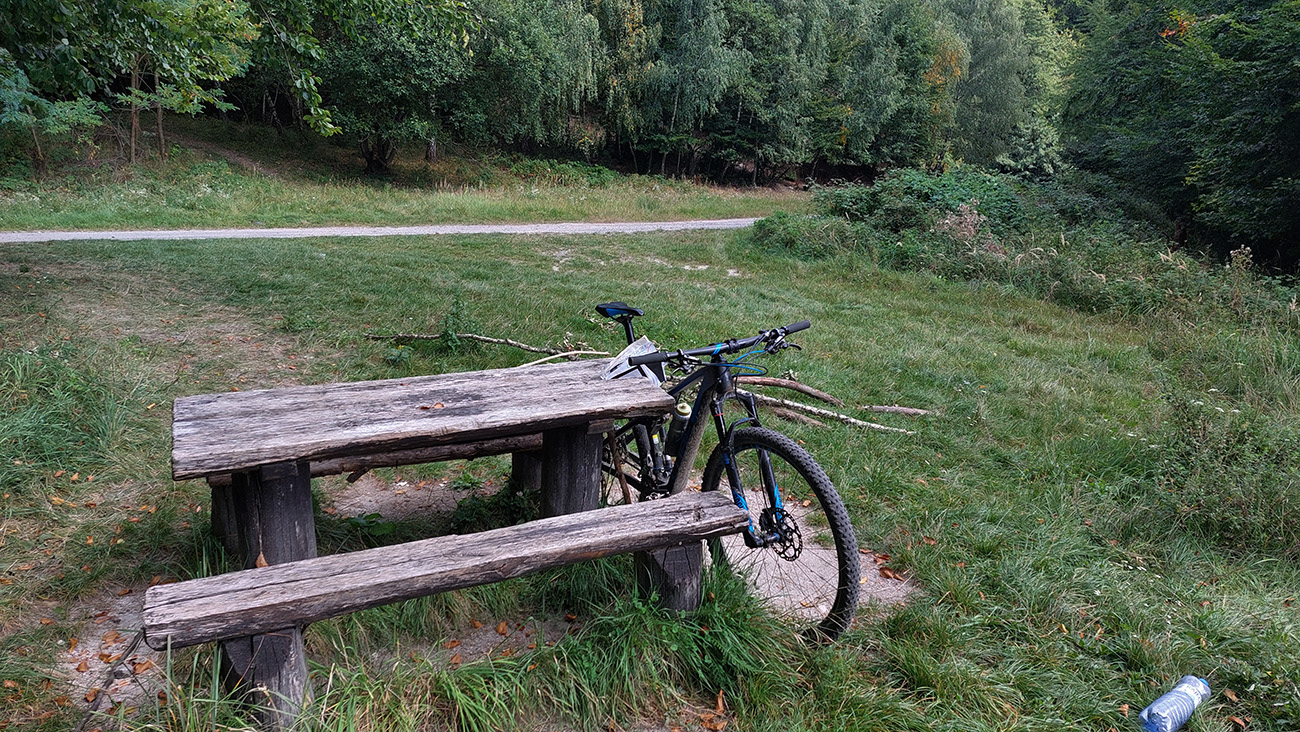 Oko trochu pookrialo a bajk si konečne užil trochu terénu (no, skôr trávy, hehe), ako som sa z ústia doliny Besnej vody snažil traverznúť popod les doprava, po lúkach na ďalšiu cyklotrasu (modrá 2417, Cyklookruh Žiar), ktorá ma už potom doviedla nazad do Skleného, kde som uzavrel okruh. Ale to bol zas asfalt (len na konci šotolina) a prejazd akoby africkou savanou – lesa tam už dlhšie niet, len vysoká tráva sa vo vetre vlní. Otrasné! Čas sa míňal, tak som si dal poriadnu časovku, za Skleným som znovu len prefičal Rovnou horou (už bez plných parkovísk) a do Teplíc som dorazil dákych päť minút pred vlakom. Tentokrát z druhej strany, cez kúpeľný park. Až na tie výnimky pekné pojazdenie to bolo a variantov je tam oveľa viac, tak som tam hádam nebol posledný raz.