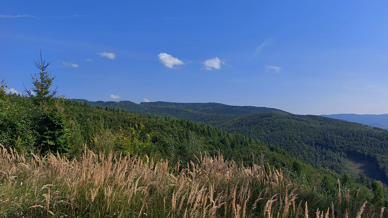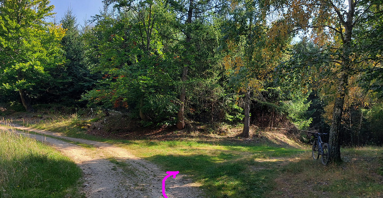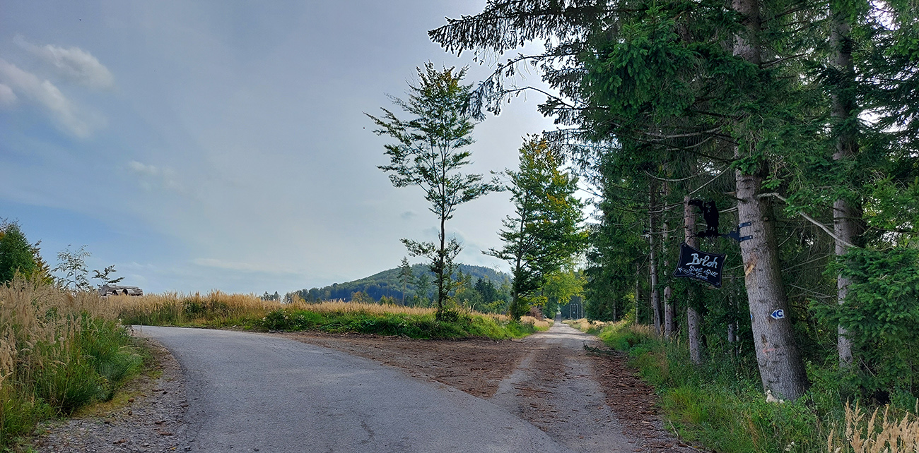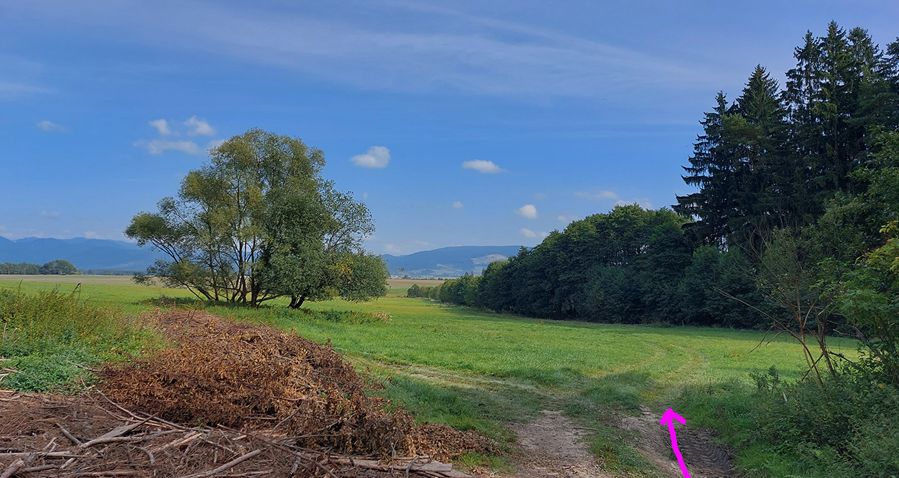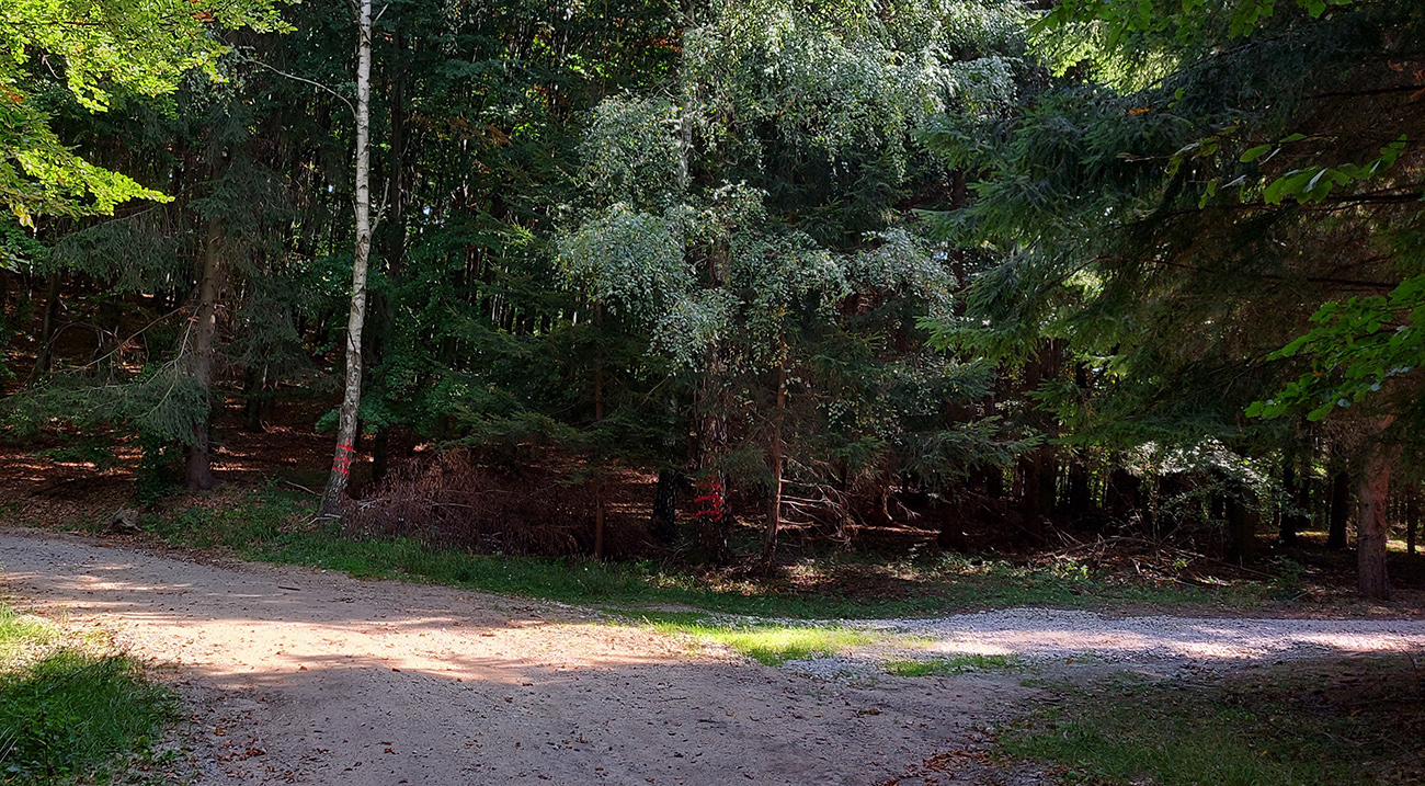 Zelenú a dve susedné modré turistické značky (vedúce z Nedožier a z PD hore na hrebeň) poznám, aj tie ma navnadili prísť sem na bajku, ale tentokrát bol zámer len ich prekrižovať traverzami tam aj nazad. Takže najskôr zo zelenej na sz na modrú, kúsok hore po modrej a sponad smerovníka Zákľuka nazad na zelenú (na Urbársky pasienok), len na „vyššom poschodí“. Mapy.cz tie cesty ukazujú ako nespevnené, ale sú to parádne lesné cesty, pod kolesami biely piesok, no čistá radosť.