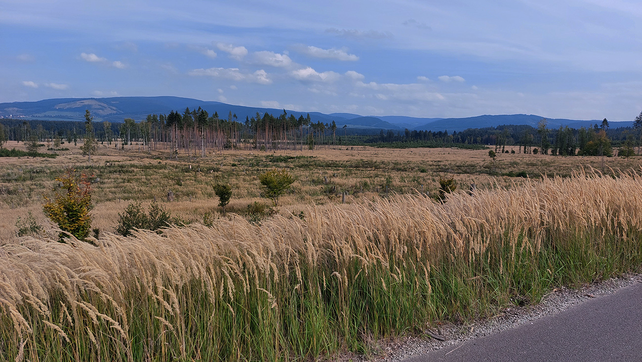 Presnejšie v južných traverzoch južnej časti Žiaru. Približne od Sklenianskych lúk po lúky na Nedožermi – Brezanmi, ale väčšinou na parádnych lesných cestách, až „strade bianche“. Lebo: asi na dlhšie posledný pekný, teplý deň, k tomu štátny sviatok v strede týždňa, to bolo treba využiť. Ktovie, kedy sa nejaký budúci dlhší pojazd na bajku podarí, a ešte navyše niekde ďalej od domu. Ale aspoň som dodržal sľub samému sebe, keď som sa tu na jar motal peši – že sa sem isto vrátim na bajku. Lebo miestne cestičky ma očarili už vtedy. Turčianske podhorie Žiaru okolo Budiša a Dubového moc dobre nevyzerá, koľko sa tam dreva ťaží. Ale táto druhá strana naopak vyzerala vždy dobre, najmä pri pohľade z cesty alebo z vlaku medzi Handlovou a Prievidzou. Navyše tri dni po preflákanej Ponitrianskej stovke som nohy už takmer vôbec necítil, tak v stredu ráno do vlaku a išlo sa na vec!