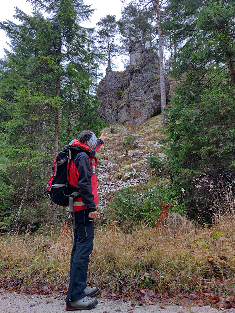 Spevnená šotolinová cesta vedie zhruba šesť kilometrov od ústia po smerovník „Spoj Rakytovských dolín“, takže pod nohy netreba veľmi pozerať. Dolinou sa plazí v pohodovom, miernom sklone aj zelená značka a cyklotrasa. Zelená pokračuje ďalej cez Smrekov na Kráľovu studňu, cyklotrasa pri smerovníku končí. To ale nie sú jediné možnosti. Od smerovníka sa dá ešte „vybehnúť“ po žltej značke pod Drienok, podobná žltá vedie z nižšieho bodu doliny do opačného svahu (ale rovnako strmého) pod Ostrú. Na mapách sú tie žlté také krátke spojky, v realite poriadne výživné strminy. Ale najmä tú nižšiu odbočku sa oplatí pozrieť, aspoň po skalný prah v jej prvej tretine, lebo cestou k nemu sú v lese, aj priamo popri chodníku, porozhadzované parádne skaly až bralá. A tam dole nie je sklon veľký (to ani na druhej žltej odbočke).