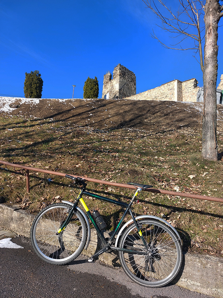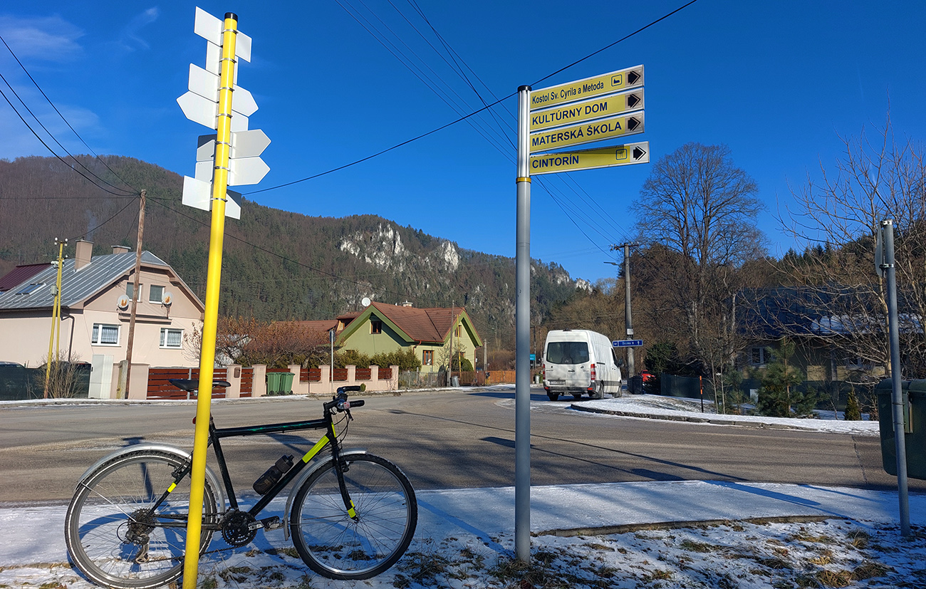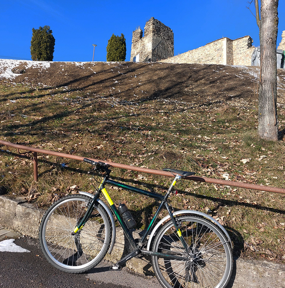 Ale na tlustých gumách sa dalo, zase popri cmiteri som zhrkotal do Lesnej, dal kolečko dedinou a našiel som si hádam jedinú lavičku na slnku, priamo v areáli pred známym betlehemom. Energiu do brucha, poopaľovať sa minútku pri tom, a davaj nazad. Konečne nebude slnko do očí pichať. A aj to dáko rýchlejšie svišťalo, samozrejme som išiel viac z kopca. Ale taký zošup do Ďurčinej popri tom cintoríne pekne opatrne, takmer krokom, po uzučkej krajnici. Aj inde bolo treba tak.