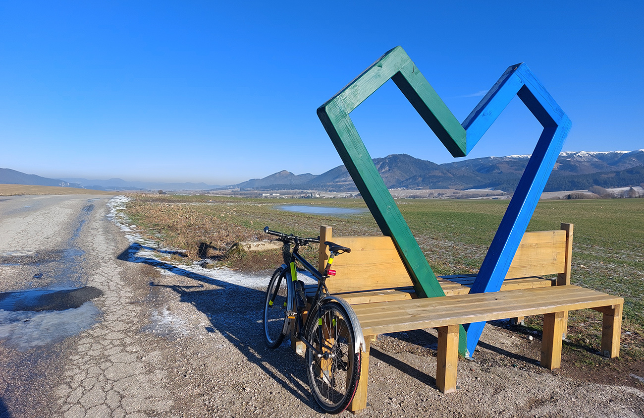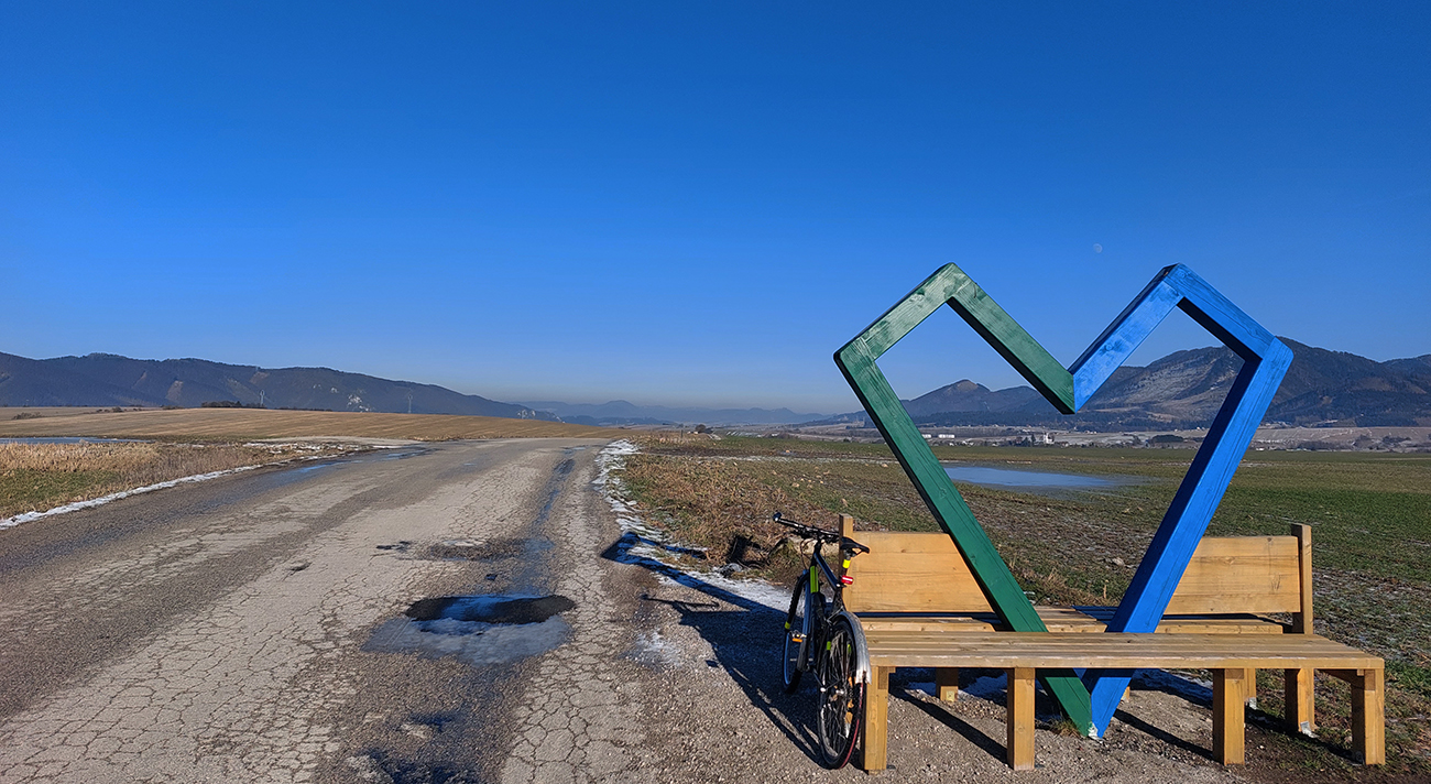 Kto jazdí cestu v okolí Žiliny, dobre vie, že ísť sa povoziť smerom na Rajec nie je nič moc. A niekedy aj dosť adrenalín – cesta úzka, krajnica žiadna a premávka hustá furt. Našťastie sú tu bočné cesty, také medzidedinské spojky, ktorými sa to dá čiastočne obabrať. Ich benefitov je pritom viac. Okrem toho, že sú spravidla o dosť tichšie ako hlavná I/64, človek aj natrénuje, lebo preskakujú cez pahorky sériou krátkych, ale niekedy poriadne jedovatých stúpaní. K tomu rozhľady ako čerešnička na torte – ten najpanoramatickejší je aj najnovšie aj príjemne zvýraznený, ako vidno na titulnej fotke. Tá „lavička so srdcom“ medzi Rajcom a Kamennou Porubou tam na jar 2023 ešte nebola.