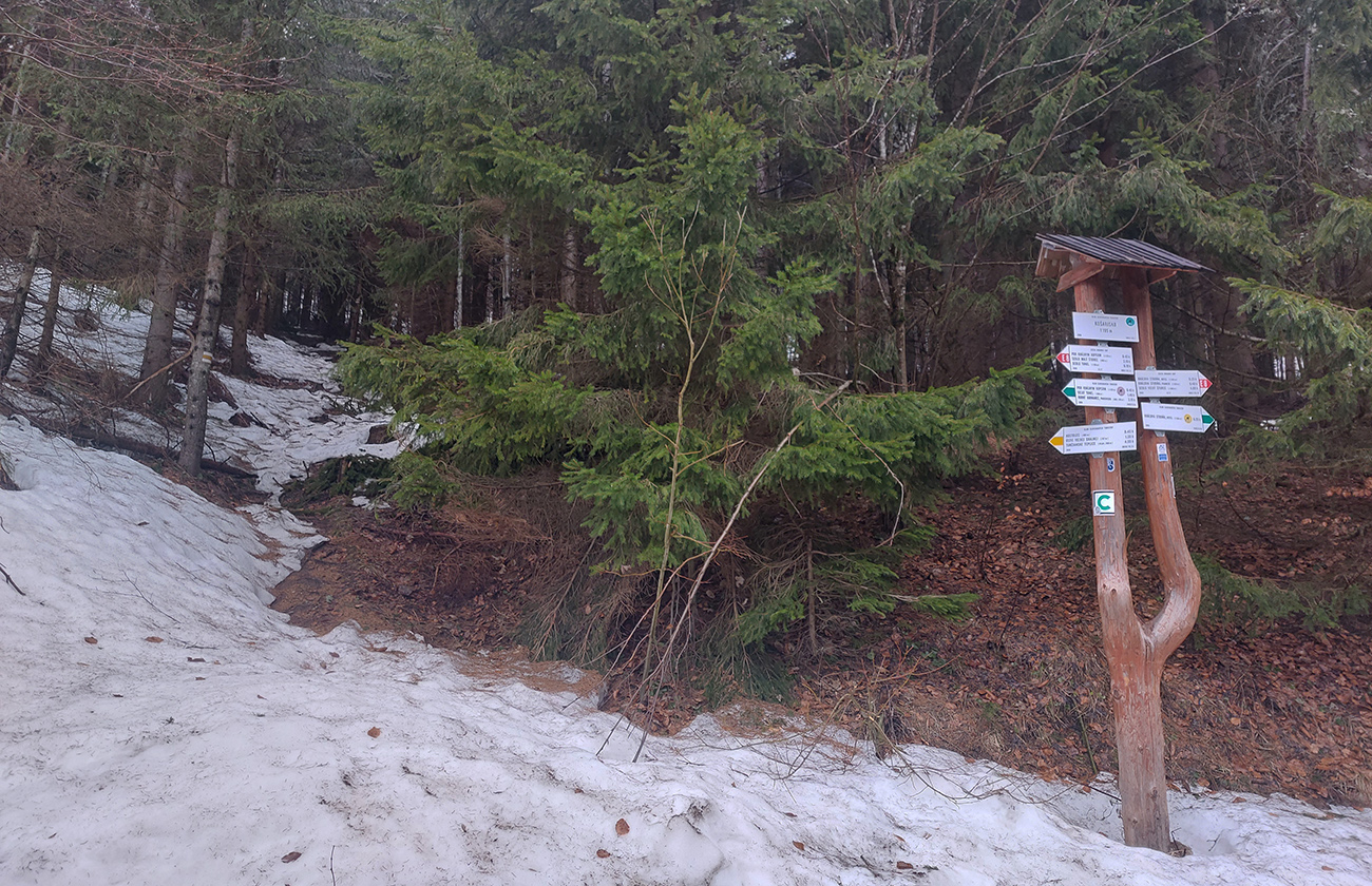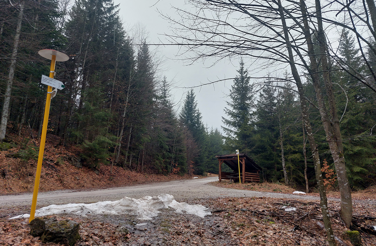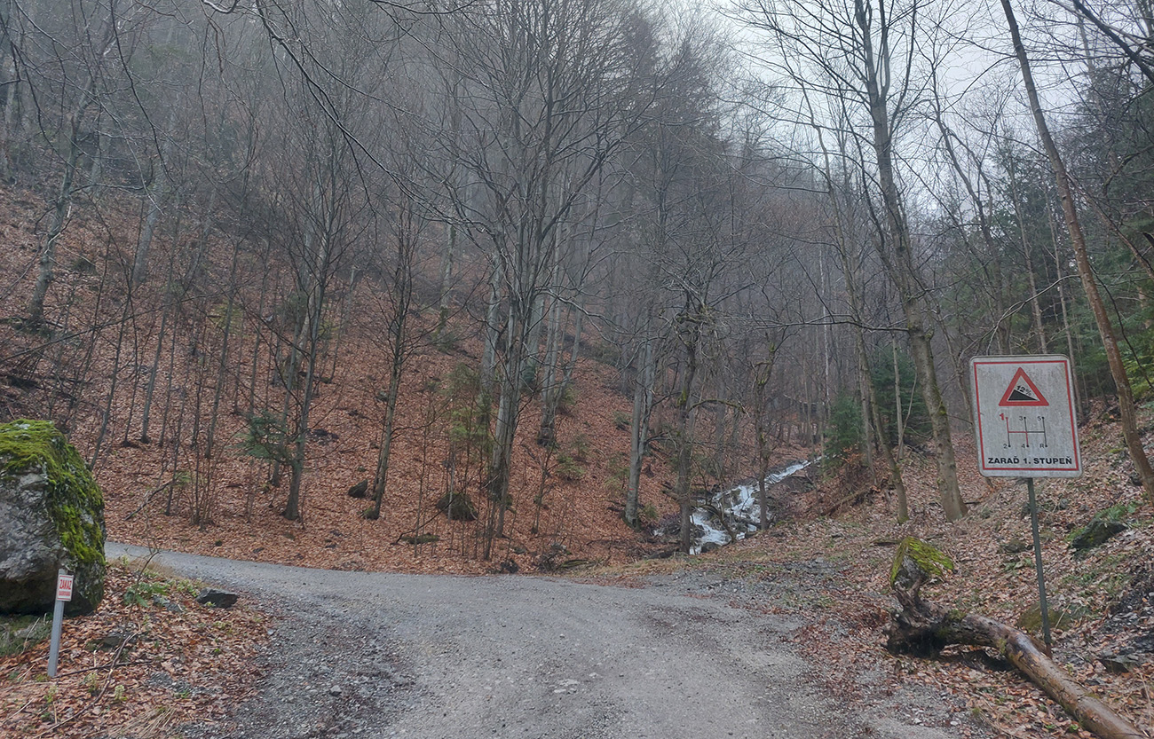 Od jaskyne už len kúsok hore a čaká pár kilákov hluchého dupania po lesnej ceste na Košarisko. Tak si to trochu spestrujem, odbočujem zo zelenej turistickej po cyklotrase smerom na Šturec, aby som sa k zelenej znovu pripojil cez príjemné, lesné serpentíny. V podstate len z nižšieho poschodia cesty na vyššie, ale vítaná zmena pohybového stereotypu.