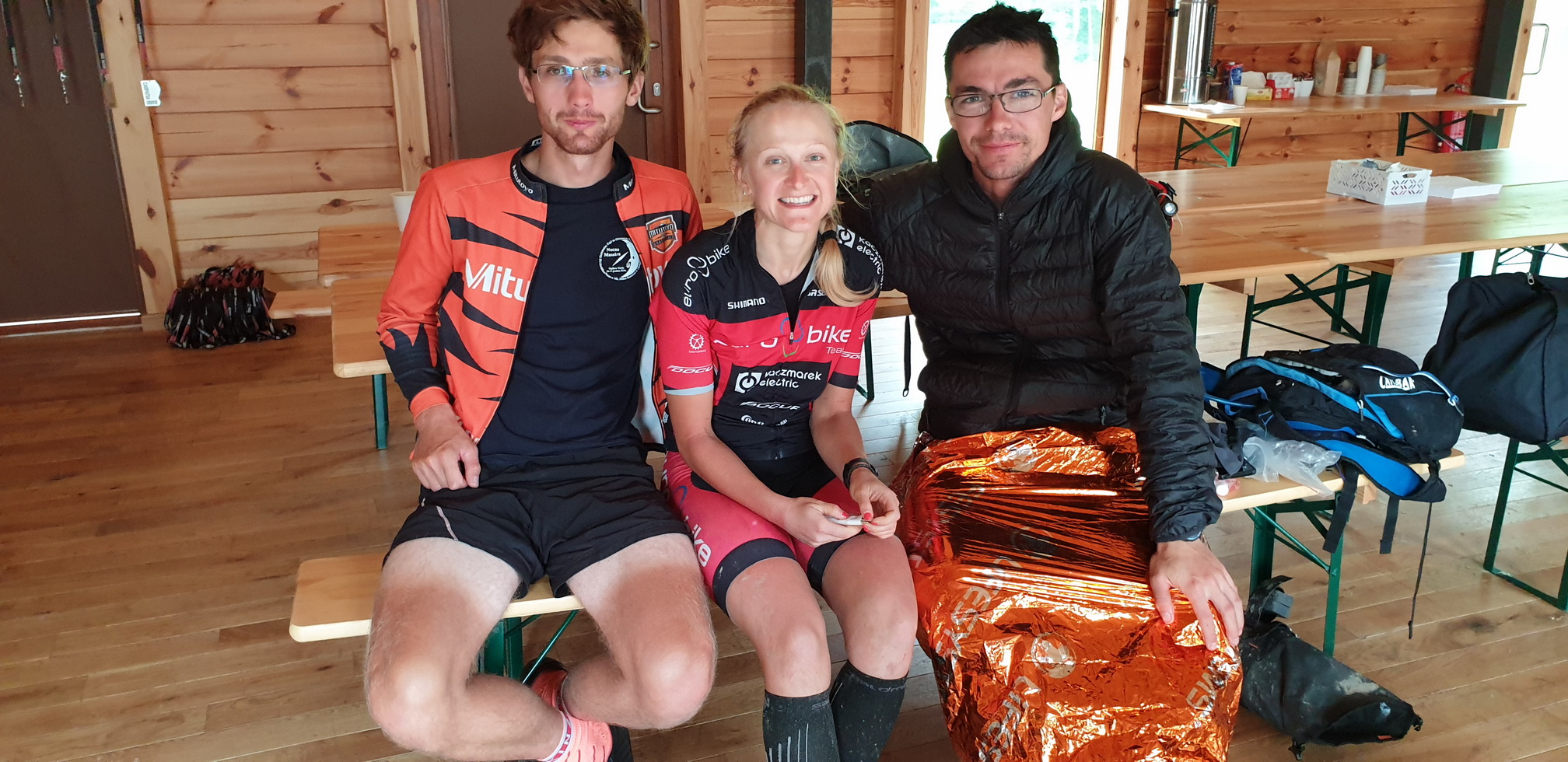 V cieli myslím na mojich kamošov, ktorí sú niekde za polovicou. Oni si to užívajú po svojom a viem, že sú spokojní. Dostávam správy aj o Ize Goscianskej, ktorá niekedy uprostred noci volala organizátorovi, že blúdi na tom hrebeni nad Cisnou, že odlomila páku prednej brzdy - "kľamku hamuľcovu" :-) Tú chatu, kde chcela spať, nenašla, lebo mala zlú informáciu, zle si to napozerala v mape a tá chata neexistovala. Celú noc sa motala po tom hrebeni v hmle a až ráno sa jej podarilo zozjazdovať do Cisny. Predbehla ju jedna pretekárka, takže napokon skončila druhá. Na tom hrebeni to musela mať drsné. Ja som vtedy spal v tom alobale.