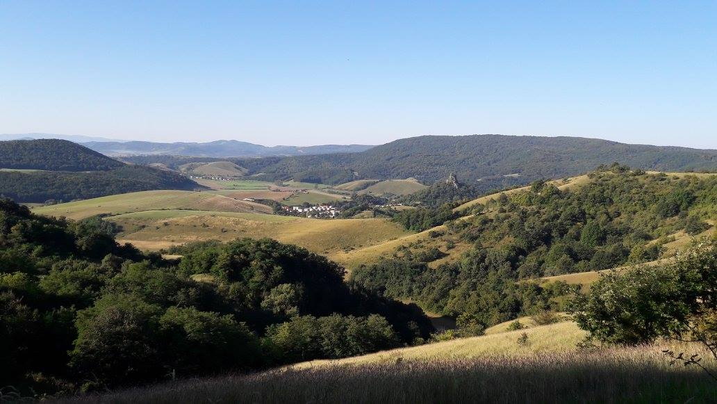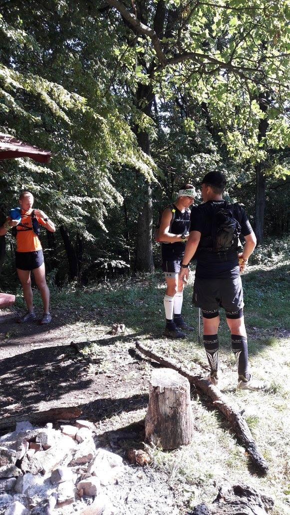 Prebehneme do Maďarska a po miestnych značkách rôznych znamienok vybiehame na hrad Salgó. Pokocháme sa pohľadom z jeho hornej vežičky, zostup tou istou cestou k telesu bývalej lesnej železnice s parádnym tunelom. Odtiaľ po žltej značke zbeh do Somoskoújfalu, po asfaltke cez celú dedinu smer hranica. V poľudňajšej páľave bežíme až do Šiatorskej Bukovinky, do miestnej reštiky. Dávame vývar, radler, dopĺňame vodu, slnko je neúprosné. Sedíme asi pol hodiny, potom sa vraciame znova na hranicu a po žltej značke, z ktorej sa po chvíli odpojíme a krátkym neznačeným úsekom prídeme na červenú, do stúpania na Karanč. Najvyšší bod dáva zabrať hlavne svojou vrcholovou časťou, kde sklon znova mieri nad 40. Ešte pred tým sa zastavujeme pri Margetinom prameni. Začínam pociťovať dehydratáciu. Od reštiky potiaľto, asi 6 km, som vypil takmer liter vody a vôbec to nestačí. Rýchle vypijem ďalší priamo z prameňa, naberám vodu do flašiek. Ďalej to bude ťažké. Čaká nás asi 25 km k najbližšej vode, terénom, kadiaľ nikto za nás väčšinou nešiel. Mal som prejdenú iba malú časť, o ktorej som vedel, že je to riadna pilka. Najvyšší kopec má síce iba 390 m.n.m., ale neustále klesanie a stúpanie vie človeka riadne morálne zničiť. Na celý úsek mám liter vody.