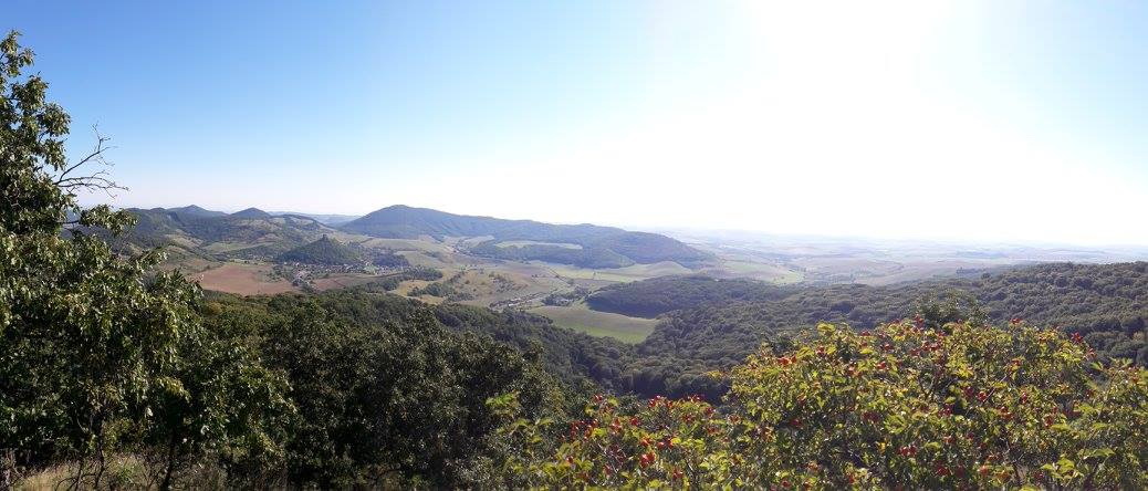 Ale posúvame sa celkom plynule, zastavujeme sa na „občerstvovačke“ s nekonečným množstvom černíc. Nik tam nechodí, tak ich je veľa. Blížime sa pod Ragáč, začínajú sopky. Stúpanie výživné, hodinky ukazujú miestami sklon až 43. Spoločnosť nám robí stádo muflónov. Hore sa vydýchať, odfotiť a technickým zbehom s množstvom voľných kameňov dole na asfaltku, kde stoja poľovníci s kyslím výrazom v tvári, keď sme im zrejme na dlhšie vyplašili zver. Tu nepokračujeme značkou, ale asfaltkou do prava, až po opätovné napojenie sa na zelenú a žltú na vrch Zaboda. Odtiaľ potom chvíľu značkou, chvíľu cestou-necestou do Hajnáčky na prvú občerstvovačku. Krčma je otvorená už od ôsmej, tak dávame kofolu, horalku, doplníme vodu a stúpame smer Tilič s nádhernou vyhliadkou. Odtiaľ ešte kúsok a sme na Pohanskom hrade. Príjemná náhorná plošina, znova plná černíc s úzkym vlnitým chodníkom. Zbeh do Obručnej. Tu už ako výjdeme z lesa začíname pociťovať páľavu. Nasleduje prebeh cez Mačaciu k Šimonovej veži, kde si robíme znova občerstvovačku. Zaplatíme vstupné do areálu k hradu Šomoška, vodu si dopĺňame v príjemne studenom Krudyho prameni.