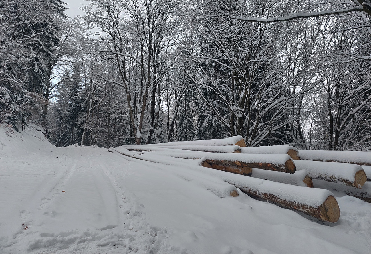 No a nakoniec tradičný pohľad na protitankový zátaras pri Partizánskej studničke, odkiaľ na Priekopské hole, Dlhú lúku a priľahlé pasienky až smerom na Minčol je parádna koľajnica položená. Samozrejme parkovištiatka pri ceste už vlekári pekne odhrnuli.