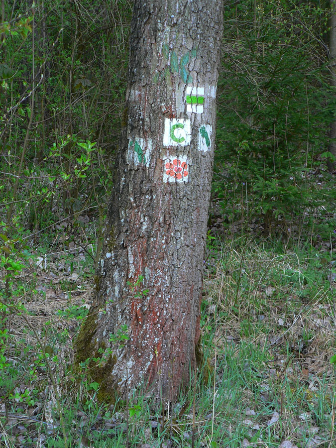 Z kúpeľov na lazy sú dve možnosti, volím zelenú, je tam menej asfaltu. Ten na začiatku vedie kúpeľným parkom. Potom ešte kúsok lesnej asfaltky okrajom lesoparku, hluk hlavnej cesty za chrbtom tíchne, pri malom rybníku aj asfalt spod nôh mizne a nasleduje ponor do rozčvirikaného aprílového lesa.