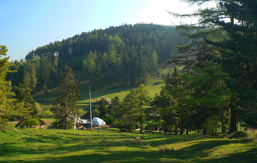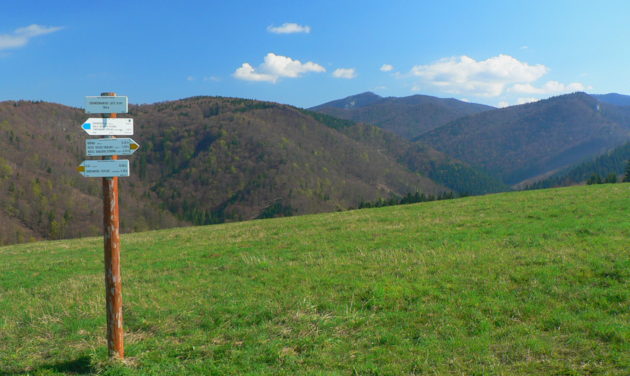 Ešte chvíľu po lúkach a pasienkoch, ktoré našťastie ešte slúžia, nezarastajú. Najkrajšie je tu v októbri, keď je najfarebnejšie. Za malým horizontom cesta klesá do lesa, ale pozor, žltá značka ešte pred ním nenápadne odbočuje doprava dolu. Chodník vedie traverzom na dno Žarnovickej doliny.