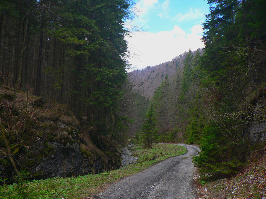 Tá nič moc - zas asfalt, ale aj holoruby, kopy dreva a široké blatnaté dno. Našťastie za zrubom, ktorý pamätá vraj ešte SNP, to začína byť úplne iné: užšie, lesnatejšie, bralnatejšie, čím vyššie tým viac. Až na výnimku v podobe zbúraniska bývalého pionierskeho tábora v ústí Rožkovej doliny, do ktorej značka (už zas modrá) odbočuje. Až potiaľto to bolo vhodné aj na bajk, odteraz už len peši.