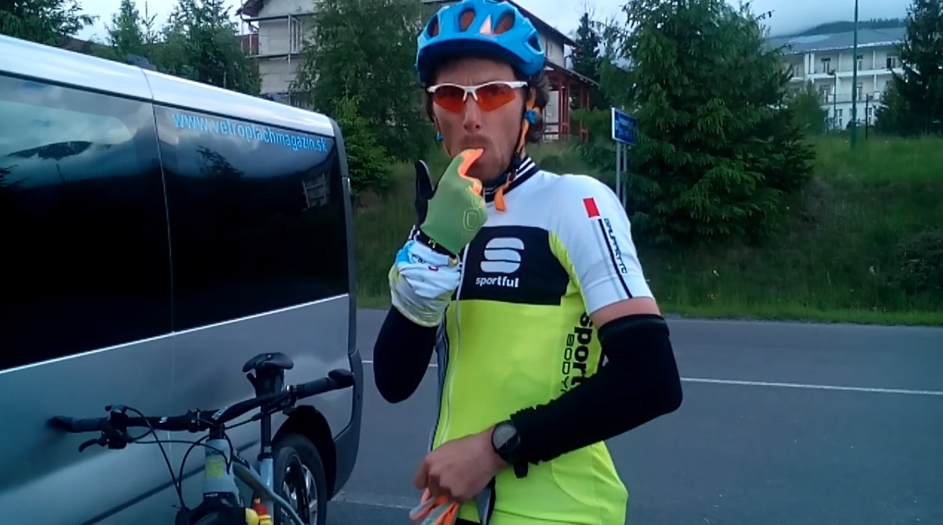 Teraz to trošku skrátim: prvých sedem výšlapov som dal v celkom slušnom, vyrovnanom tempe. Dole pri aute som si iba doplnil tekutiny a vzal niečo na jedlo. Počas výšlapu som jedol iba ovocné smoutíky a banány. Nejakú tuhšiu stravu som musel zjesť vždy dole. Po siedmych hodinách prišla Slávka s čerstvým zeleninovým vývarom. Ak sa o ultra hovorí ako o pretekoch v jedení a pití tak práve tento môj pokus mal byť vyšperkovaný do dokonalosti. Koncept Everestingu totiž práve túto možnosť dáva. Pri iných ultra projektoch nebýva vždy takáto dokonalá možnosť občerstvovania...