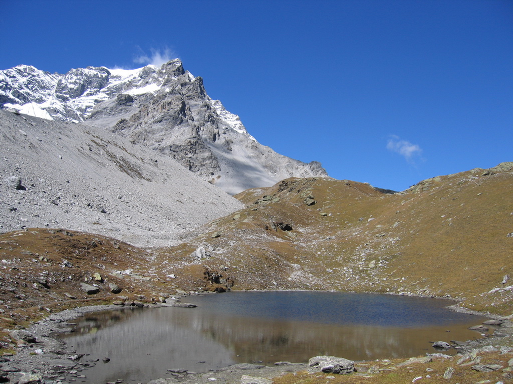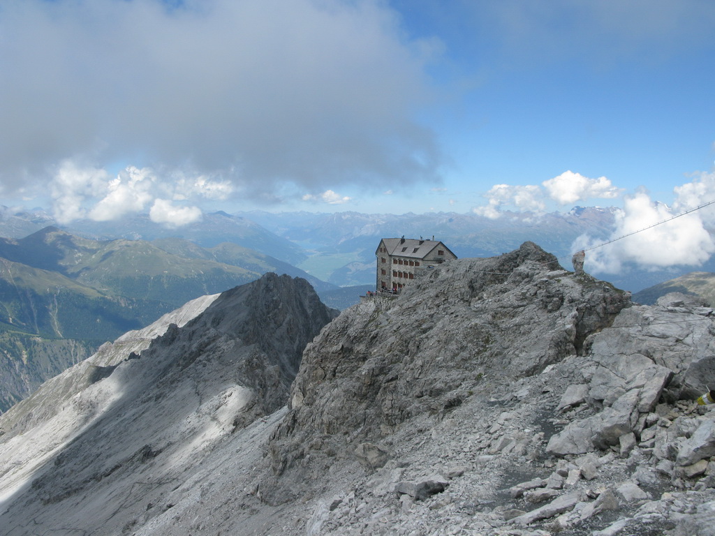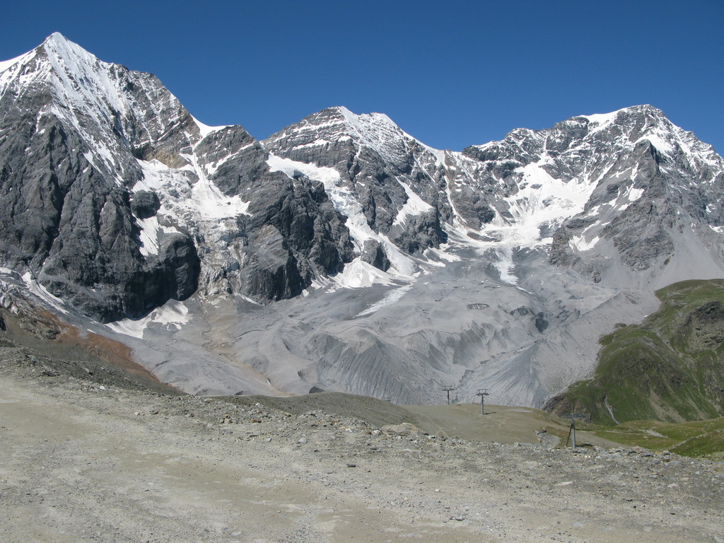 Od chaty prejdete vpravo popri jazere smerom k moréne ľadovca po vychodenom neznačkovanom chodníčku až na vysoký násyp morény. Po ňom až k úpätiu Ortlera. Tu vpravo slabo viditeľným chodníčkom strmo hore, až sa dostanete na široký suťový svah. Serpentínami po chodníčku hore. V závere skalný prah (cca 2+), po prelezení sa dostanete na ďalší sutinový svah. Na jeho konci začína lezenie cca 2+ a neskôr hrebienok cca 3. Stále sa držíte vľavo od výrazného hrebeňa, až sa naň dostanete v mieste, kde začína ľadovec.