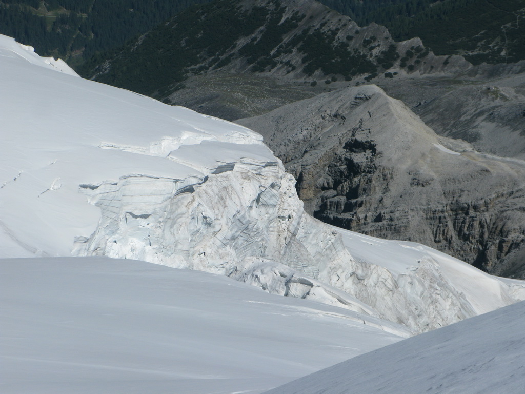 Počas mojich dvoch výletov na Ortler som sa našťastie s týmto problémom nestretol. Po výstupe Hintergratom som pri zostupe po ľadovci dokonca využil ponuku dvoch Rakúšanov a cez trhliny som prešiel spolu s nimi, naviazaný na lane. Takže som nemusel vôbec riskovať.
