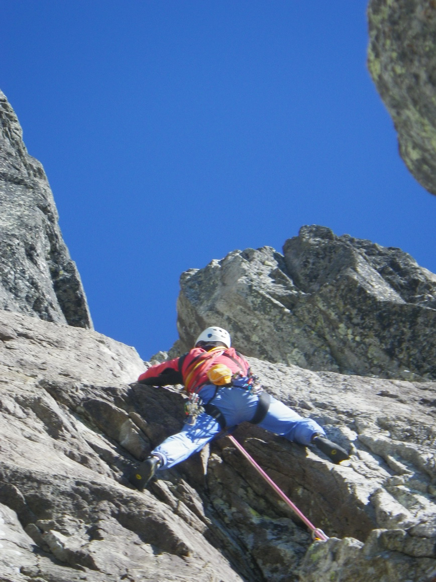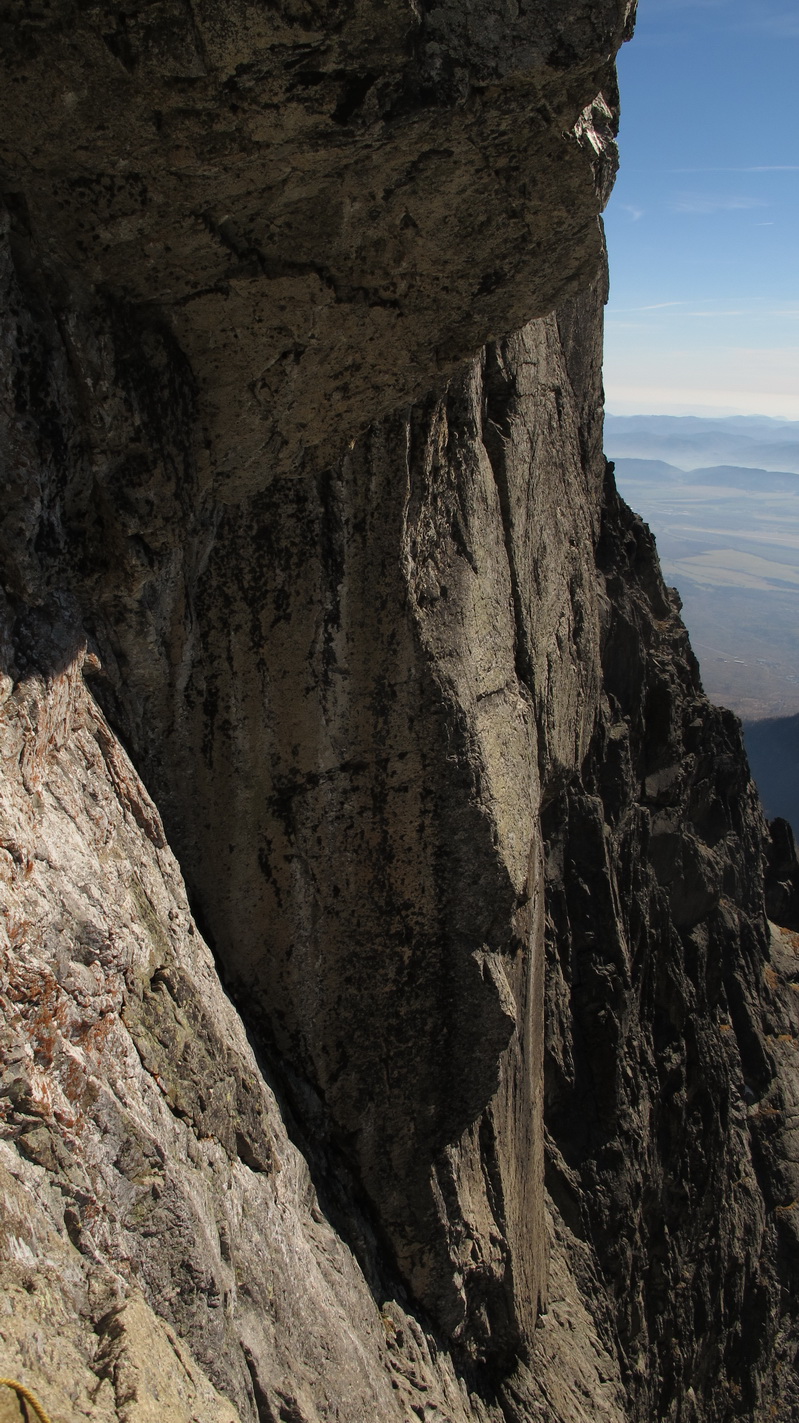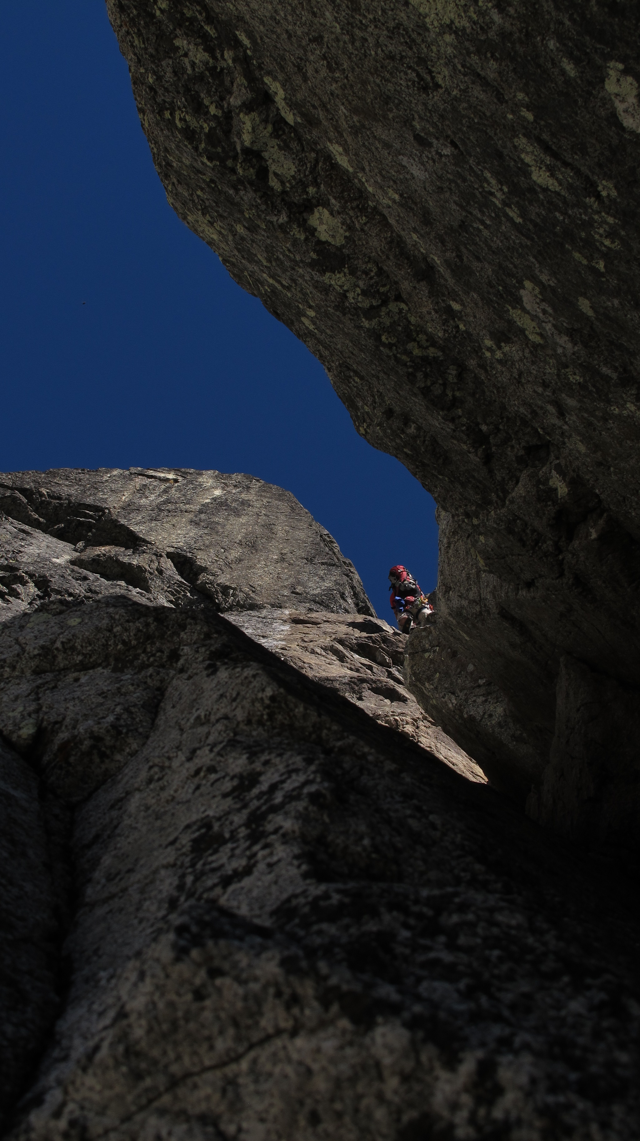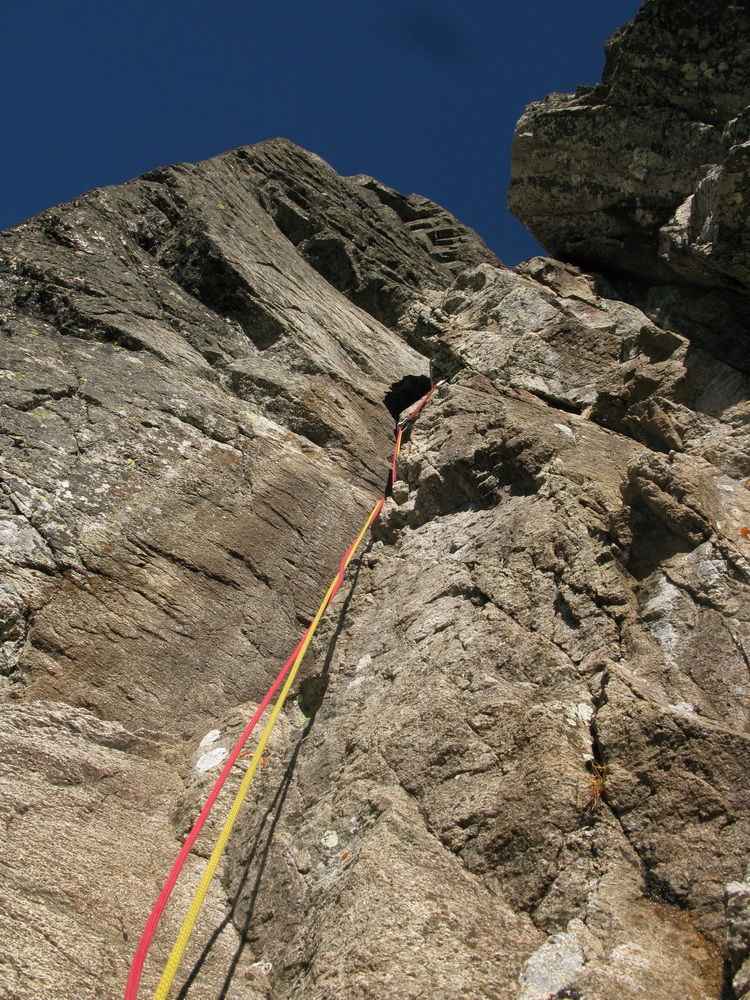 Je rad na mne a na vlastnej koži sa presviedčam, o čom je ten traverz. Pri tých pár krôčkoch po relatívne dobrých stupoch, ale žiadnych chytoch sa pokúšam škrabkať nechtami po skale. Som na štande a rad je na Matúšovi. Nevidím ho, lano sa po chvíli zastaví. Skúšam dobrať, nehýbe sa. Dlho sa nehýbe. Nevidím ho. Počujem ho. Nahlas ho počujem. Veľmi nahlas ho počujem:)