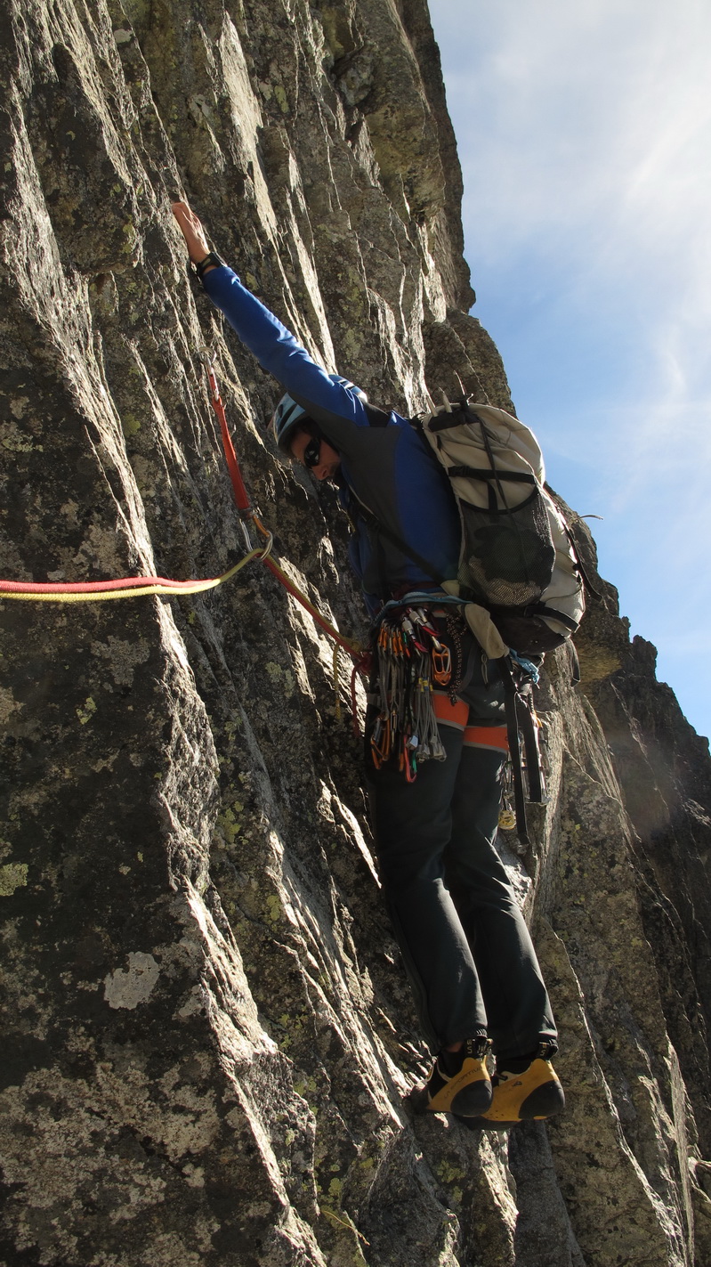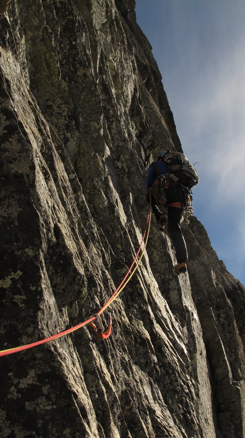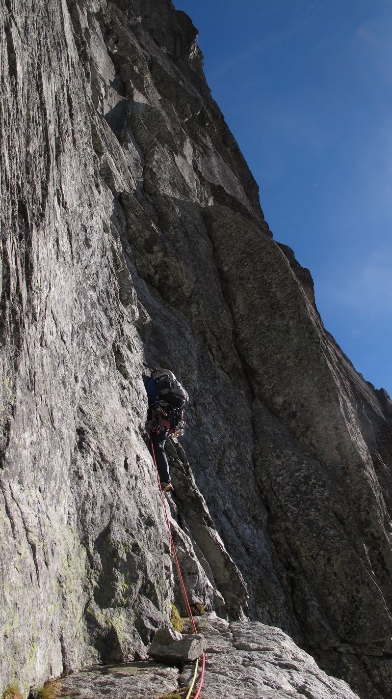 Konečne je tu. Zvárame ďalej. Krásna platňa pod Hokejkou. Doliezame ku Stanovi. Fotíme. Vychutnávame.