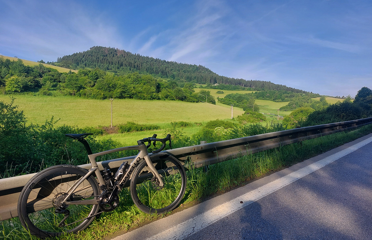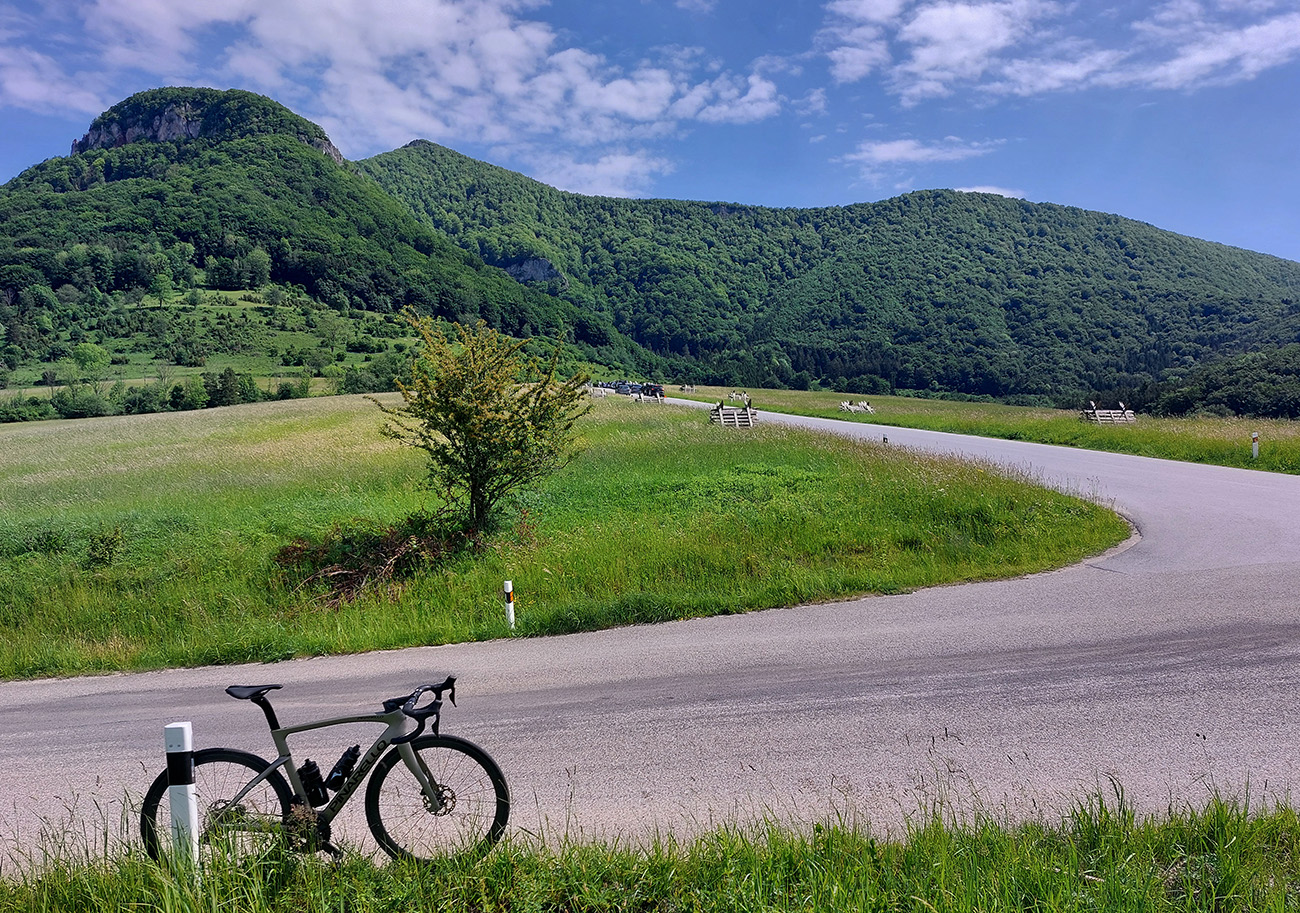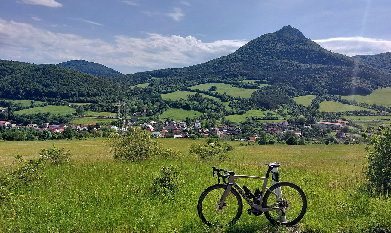 ...čiže obľúbené žiletkárske stúpania v srdci Strážovských vrchov, na rozhraní Turca, Ponitria a Považia. Plus Vyšehradské a Vríčanské sedlo, lebo sa k tým stúpaniam z názvu bolo treba nejako z domu dostať. Alebo ďalší z variantov kombinácie cyklisticky veľmi pozitívnych ciest v tejto časti krajiny, ako ich už tu na Vetromagu máme párkrát zreportované (odkazy dole). Pekná nedeľa pred koncom mája to bola – akurát, že tesne popoludní hrozili búrky, tak bolo treba chytro vyraziť. Ale zas ráno chladné, tak sa mi nechcelo moc na rovinách mrznúť a nechal som sa doviezť do Turčianskych Teplíc prvým vlakom. Že to nebude dlho trvať cez Dubové a Budiš, a potom zahrejem motory stúpaním popod Vyšehrad. Cestou pod ten prvý kopec, so slnkom za chrbtom, to bolo síce o zohriatom zadku a zmrznutom bruchu, ale popod hrad potom už paráda, lebo vyššie viac slnka aj tepla: