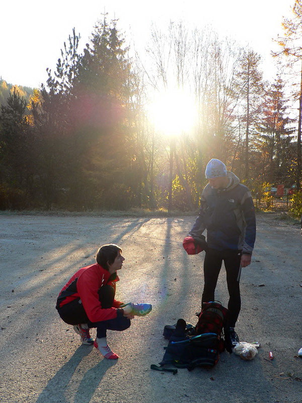 Nebolo mi viac treba, šialenstvo môže začať! Chlapci nevedia do čoho idú, bude sranda hehe. Kukám kedy ide bus z Martina do Vrícka, prvý normálny až po desiatej. Íha, to bude asi natesno, do tmy stihnúť... Ale toto som podcenil, toto je profesionálna akcia! Všetko premyslené, odvoz zariadený, „šéftréner“ nás vyhadzuje z auta do mrazu na konci dediny, a vraj príde po nás aj na Hole. Kam? Veď takí rozbehnutí budeme z Holí dolu na Stráňach za 20 minút, provokujem. Odozva profesionálne chladná! Začínam pochybovať o svojej výhode „skúseného“ borca, veď to idem na rožky a cukríky a títo začínajú vyťahovať gely. No uvidíme na prvom kopci.