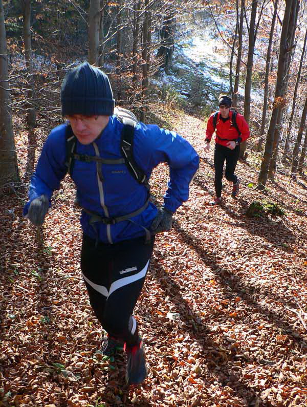 Do Vríčanského sedla žiadny beh, pekne v pohode na rozohriatie, vraj len rovinky a z kopcov budeme bežať. Na Baku definitívne odmietame dlhšiu variantu cez Kľak, ide sa do sedla. OK, za sedlom už bežíme a tempo udáva ten s najdlhšími nohami, to nevyzerá pre mňa dobre... Našťastie pod Skalkami dlhé nohy odstriedajú. Napriek tomu sa tempo akosi zvyšuje. No dobre, endorfíny, adrenalíny, mladosť - pochabosť, fučím si akože skúsene vzadu. Ale pre istotu šprintujem do kopca s výhovorkou že treba fotiť aj spredu. Tuším že dnes toho veľa spredu nenafotím...