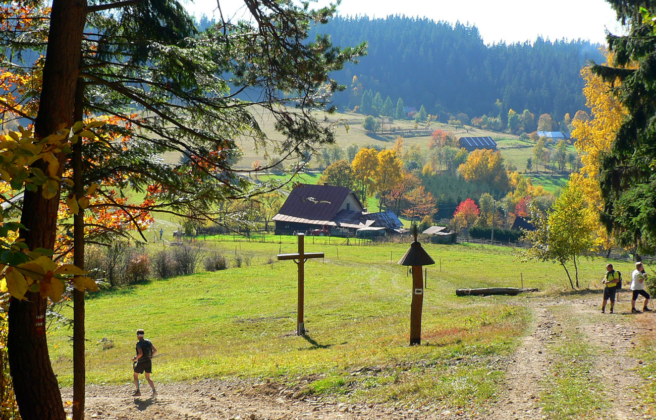 Zhodneme sa hádam všetci, že siedma J100 bola jednoznačne najkrajšia stovka sezóny. Kúpala v slnečných lúčoch naplno rozbehnutého babieho leta, aj s rannými hmlami v dolinách, ktoré k jeseni patria. Neskutočne pestrá krajina lesov, lúk, pasienkov a najmä samôt hýrila počas druhého októbrového víkendu poriadne gýčovými farbami. Teplota na behanie ideálna, vietor žiadny a po suchom začiatku jesene aj blata bolo len tak symbolicky. Aby sa nepovedalo, že nie sme v Javorníkoch :-) Len jednu chybu to malo: skús na chvíľu spustiť oči z kamenistej cesty, ešte keď sú šutríky maskované napadaným lístím... Aby sa držky, tigre, rybičky a iné nedobrovoľné skoky príliš nemnožili, viacerí sme si povedali, že škoda sa v takom počasí naháňať, ideme sa kochať krajinou. Dobrá výhovorka, keď človek viac chce ako môže, nie? Aj tak sa mi zdá, že bol nejaký veľký odpad, zo 30 ľudí hádam nedošlo...