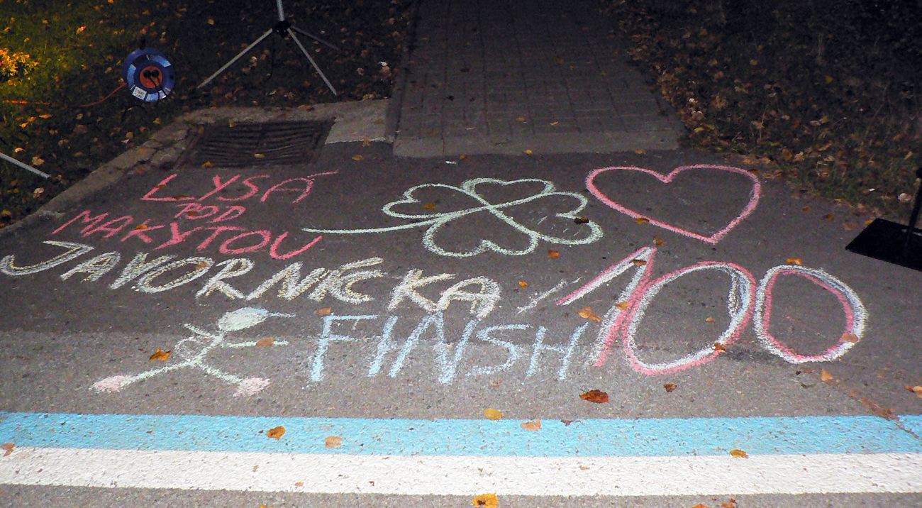 Tak, cieľová „rovinka,“ posledných asi 10 km. A sranda, že akosi viac do kopca ako z kopca. Také monotónne dupanie po nočných zvážniciach. Kufrovacia lúka z minulého roka je našťastie už označená parádne (si myslím). Ale neskôr, keď už sedím v cieli, cez okno vidno ako niektorí prichádzajú z opačného smeru ako by mali. A jeden nešťastník sa dokonca ocitol druhý raz na K7 :-) Asi mu vtedy nebolo veľmi do smiechu... Tak, nik hádam na tých šutroch veľmi zle nedopadol, čiže všetko hádam dobre dopadlo. Orgsteri z SUT sa tiež hádam nebudú dlho spamätávať z prebdených nocí. Zas to spravili na viac ako jednotku, lebo vybavili aj počasie a suchý podklad. Už čo môže byť o rok lepšie? Žeby konečne potreba mať tie lyžiarske okuliare? Každopádne vďaka za najkrajšiu stovku sezóny.