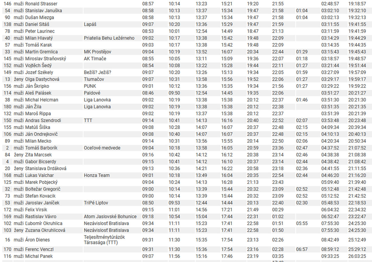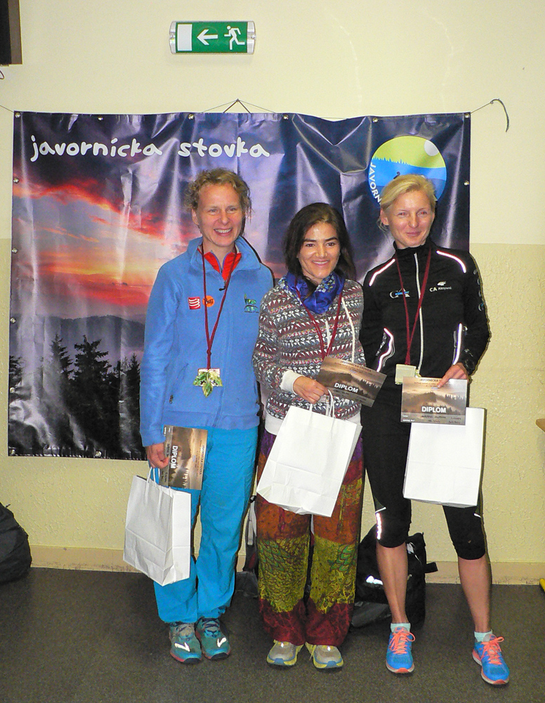 Vlaňajší víťazi a držitelia traťových rekordov neprišli, ale neprišli o svoje rekordy. Teda Lucia prišla, ale len na kontrolu pomáhať a poháňať svojho Pištíka. Ani rýchlych českých bratov nebolo toľko čo vlani, sa mi zdalo. Zato tí najlepší uchmatli prvé dve miesta: Tadeáš Vyvíjal (11:08) a Jaroslav Vicher (11:51). Zabednil ešte Vendelín Bugáň ako najlepší Slovák (12:03). Smolu mal Miki Kéri, ktorý odstúpil z tretieho miesta na Portáši (K6), a podobne Matej Oravec, tiež bojujúci od začiatku vpredu, ktorý to po dlhej kríze dokŕčoval tiež len tam. Víťazka septembrovej P100 Aysen Solak z Turecka zasuverénila aj tu časom 13:05 a celkovým siedmym miestom, „o parník“ pred Poľkou Marzkou Janerka (15:24). Fičala poriadne, lebo starosti jej až po Semeteš robila Ivana Líšková, s ktorou sa od začiatku naťahovali o vedenie. Ivanu ale zradilo koleno a aj ona (aj so suitou) ostala sedieť na Portáši. Tretia Gabika Bajteková to dala pohodovo za 16:20. Výsledky budú na stránke J100 a online sa dali sledovať ako vždy na Ultra Hikingu.