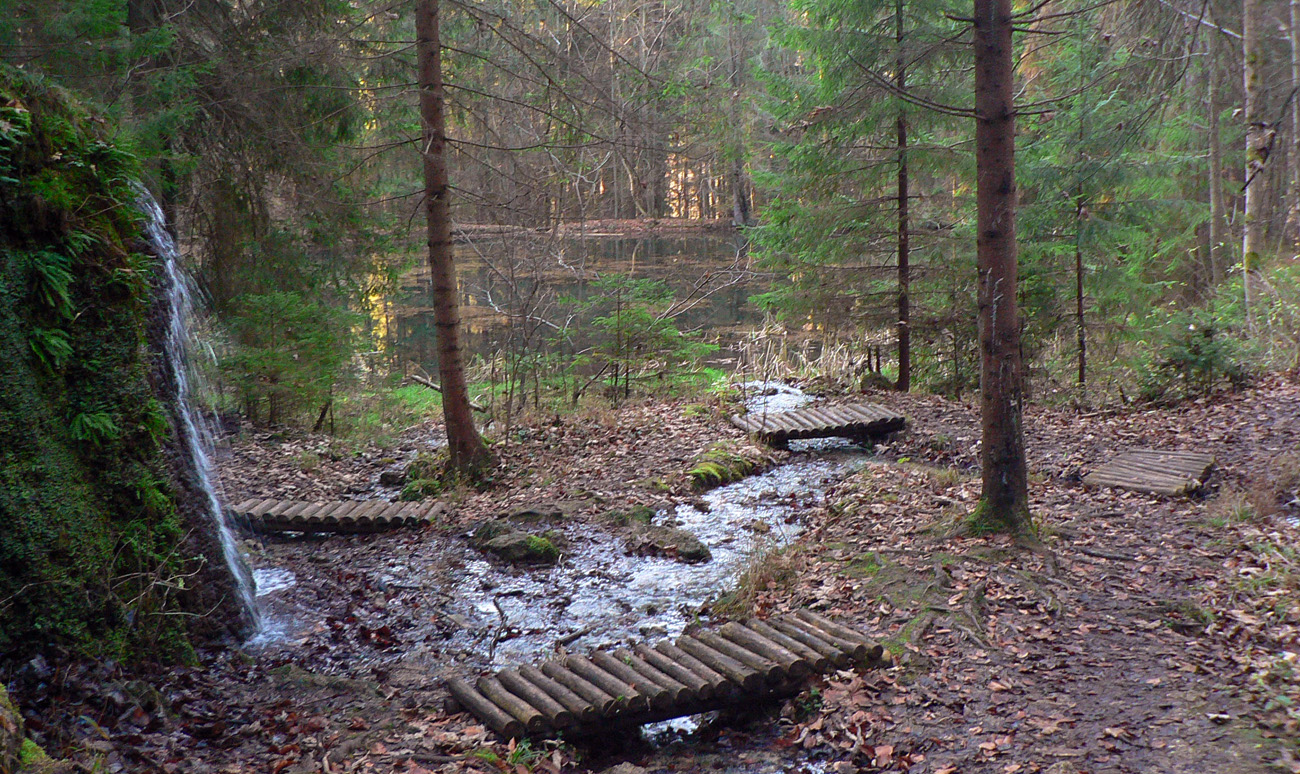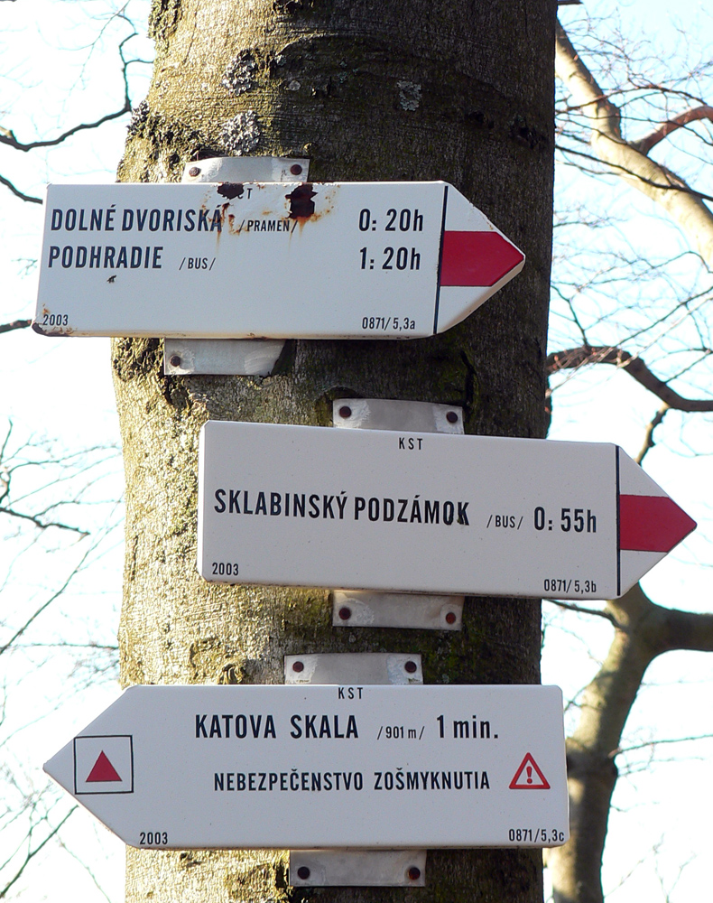 Od minerálky doľava je to nazad do Sklabinského Podzámku dlhšie, tak na pol hodinku chôdze, ale dá sa to obabrať zaujímavejšou trasou. Stačí sa dostať na druhú stranu Kantorského potoka (cesta k mostíku vedie poza plot FEST nechutnej milionárskej haciendy). Tam už sú šípky, navádzajúce priamo na Sklabinský hrad. Stačí si vybrať smer a potom z hradu už je to dole do Podzámku len pár minút.
