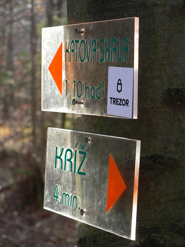 Červená značka síce vedie z Katovej skaly ďalej do Podhradia, ale v doline ťažia, je to hnus, velebnosti. Lepšia správa je, že priamo z Katovej skaly vedie miestny, FEST dobre značený chodník (oranžové štvorčeky na stromoch) priamo na vyhliadku nad Teplickými serpentínami a z nej dole, k najvyššie položeným rybníkom. Kto potom zbehne po serpentínach až dole, k ceste, môže sa tam napiť FEST dobrej minerálky. Po ceste doprava (popri tom koncentrákovom plote) je to len zo päť minút do Štiavničky – tam na návštevníkov čaká napríklad rodný dom Jána Kostru.