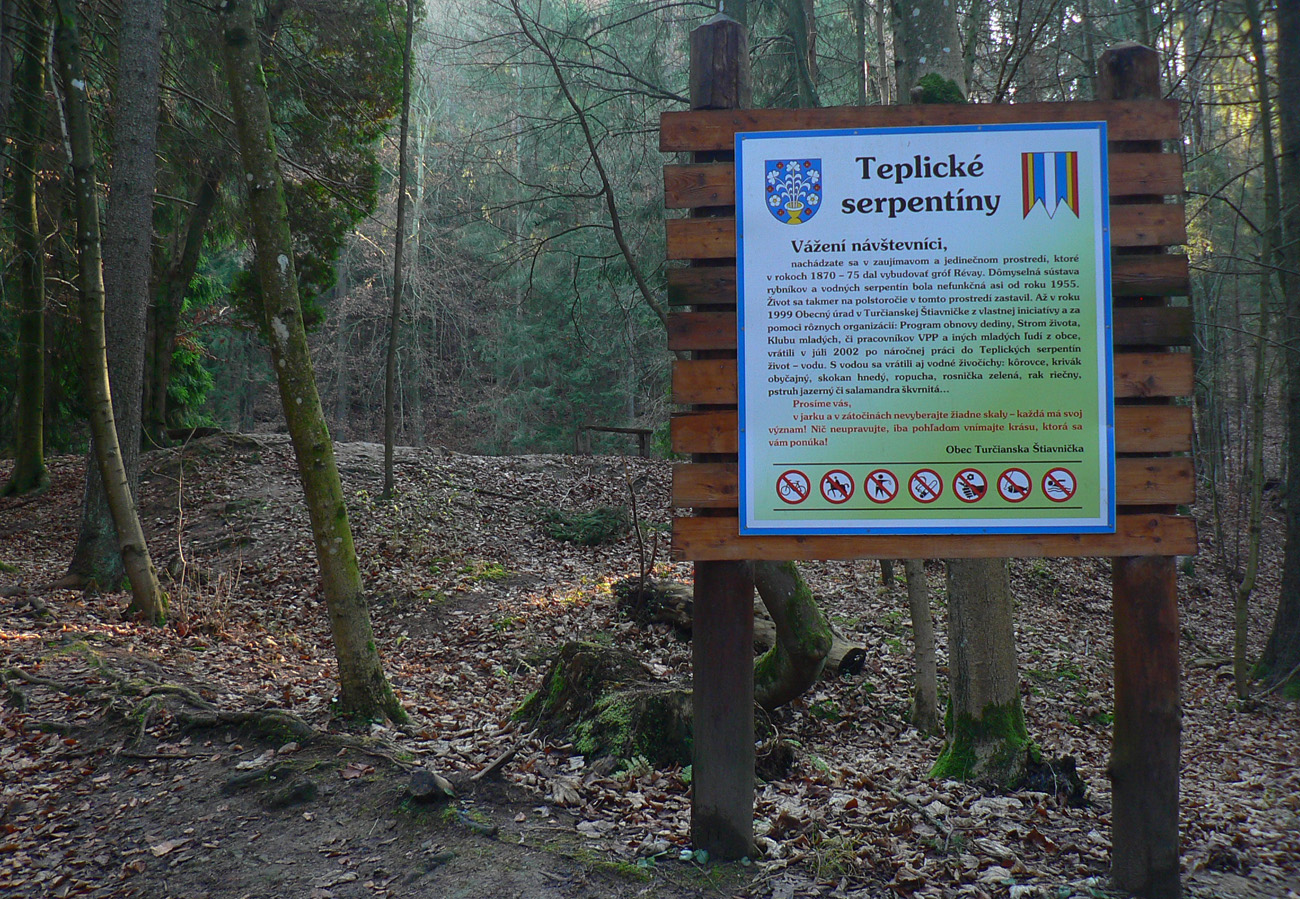 V okolí je takýchto rýchlo dostupných cieľov viacero, dajú sa skombinovať: na susednom kopci Sklabinský hrad, na opačnej strane biedny zvyšok Sučianskeho hradu. Aj na Katovej skale bolo voľakedy hradisko. V blízkej Turčianskej Štiavničke jeden z našich najcennejších anglických parkov, ale dnes žiaľ obohnaný hnusným trojmetrovým plotom. Z kaštieľa na jeho okraji je skoro ruina, len strechu má novú. Takže najväčšia rarita sú tam Teplické serpentíny (jeden zo siedmich divov Turca) a k tým sa pozrieme. Je to sústava rybníčkov a zaujímavých serpentín medzi nimi (v strmom svahu oproti parku), po ktorých okrem chodníka putuje do doliny cik – cak aj voda. Po 130 rokoch od vybudovania tejto zaujímavej vodno-lesnej atrakcie ju polozničenú obnovili miestni zo Štiavničky v r.2002.
