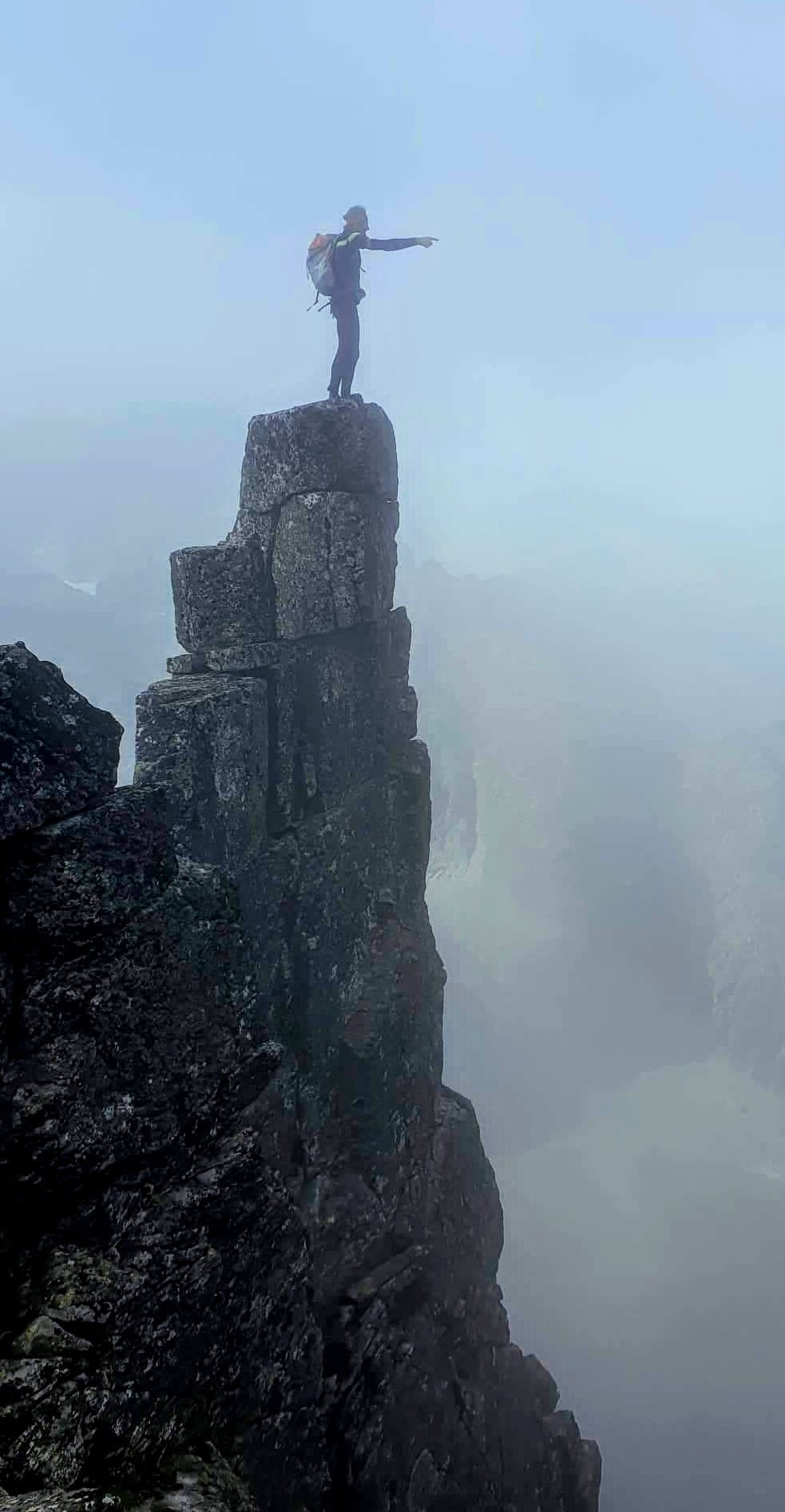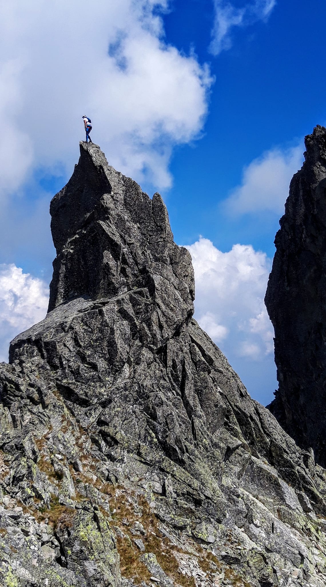 Ferimu naznačujem, že póza na Spišskej ihle, to by bolo foto! Neváha a za chvíľu mi už máva z vrchu. Mňa asi drbne, mobil odmieta fotiť - je totálne full. Kričím naňho, nech ešte chvíľu zotrvá v tej póze, a snažím sa rychlo čosi povymazávať. Feri je kľudas, ale mám obavy, aby zo mňa nedostal tiky.