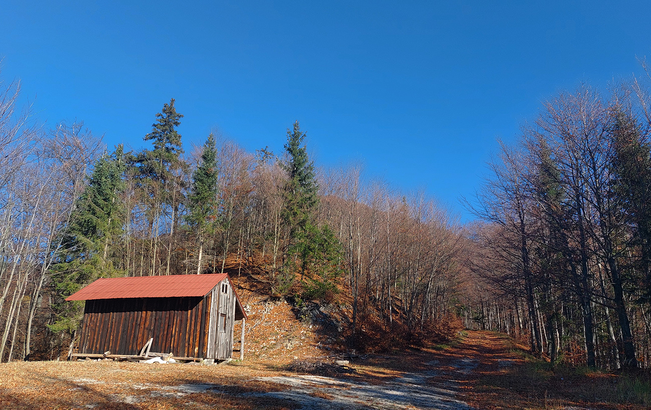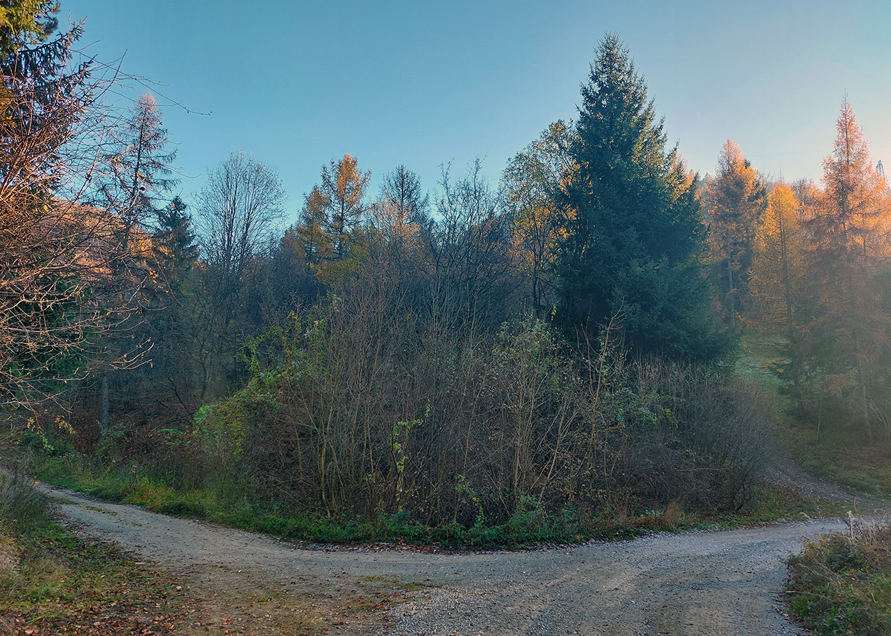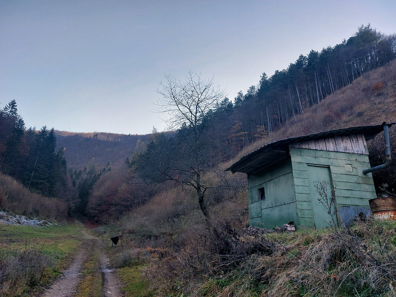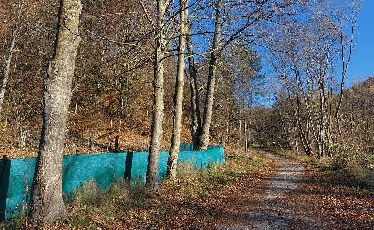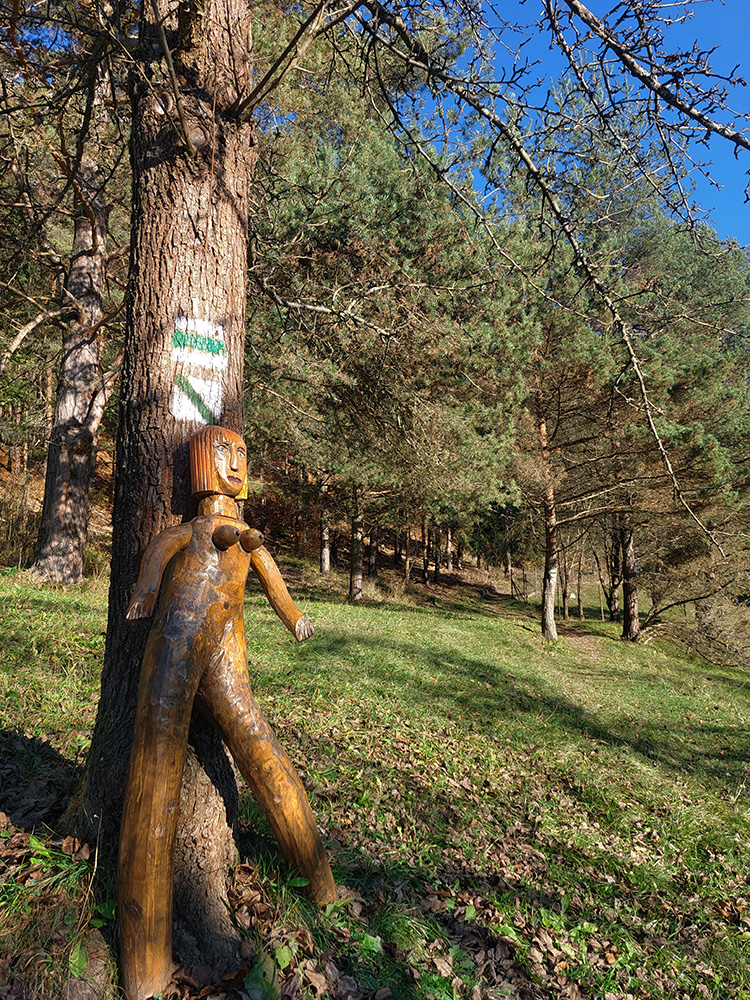 Potom už nolčovský mostík cez Váh, ešte trochu šotoliny do Krpelian a nástup do poctivých kopcov, hneď za krpelianskou elektrárňou. Najskôr po žltej, potom kadejaké traverzy s občasným prekrižovaním turistických značiek - všetko dobré, suché, lesné cesty, len škvrčanie šotoliny už väčšinou nahradil šuchot lístia. Čím vyššie, tým teplejšie, teda aspoň na južných svahoch. Na opačných námraza.