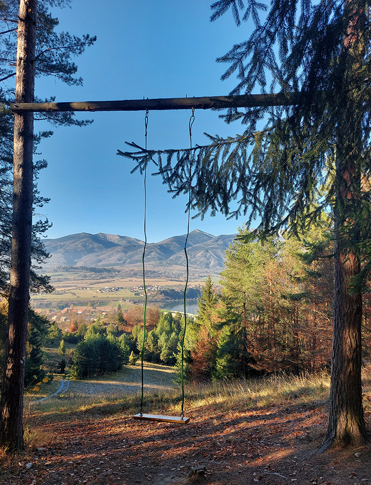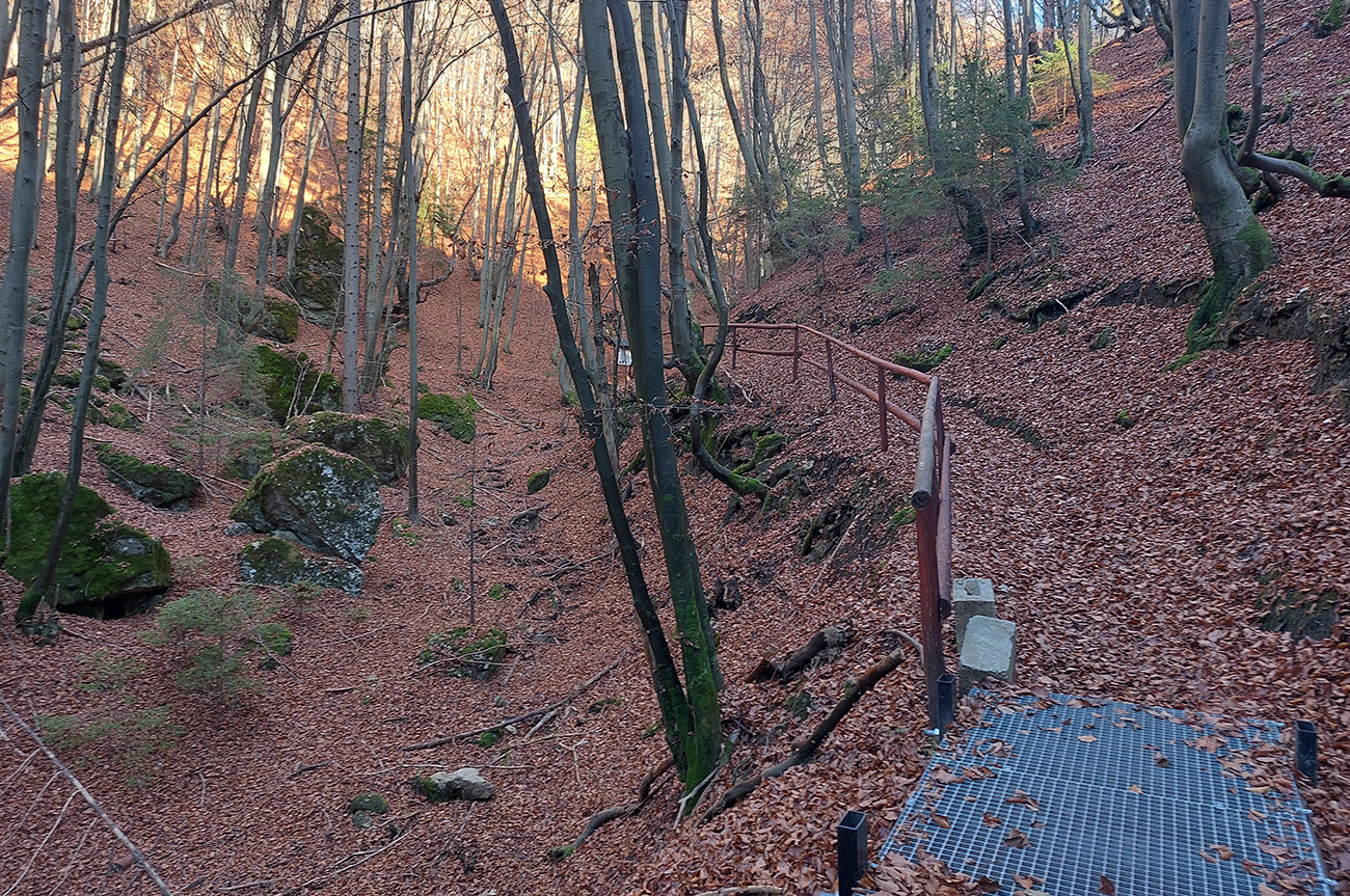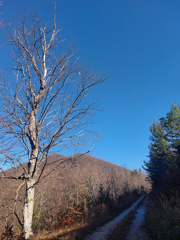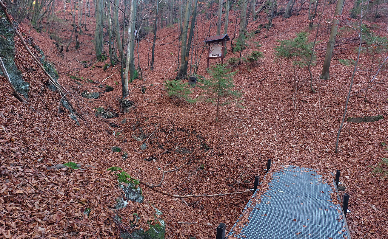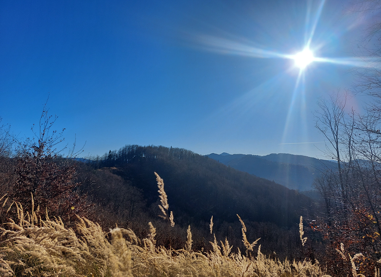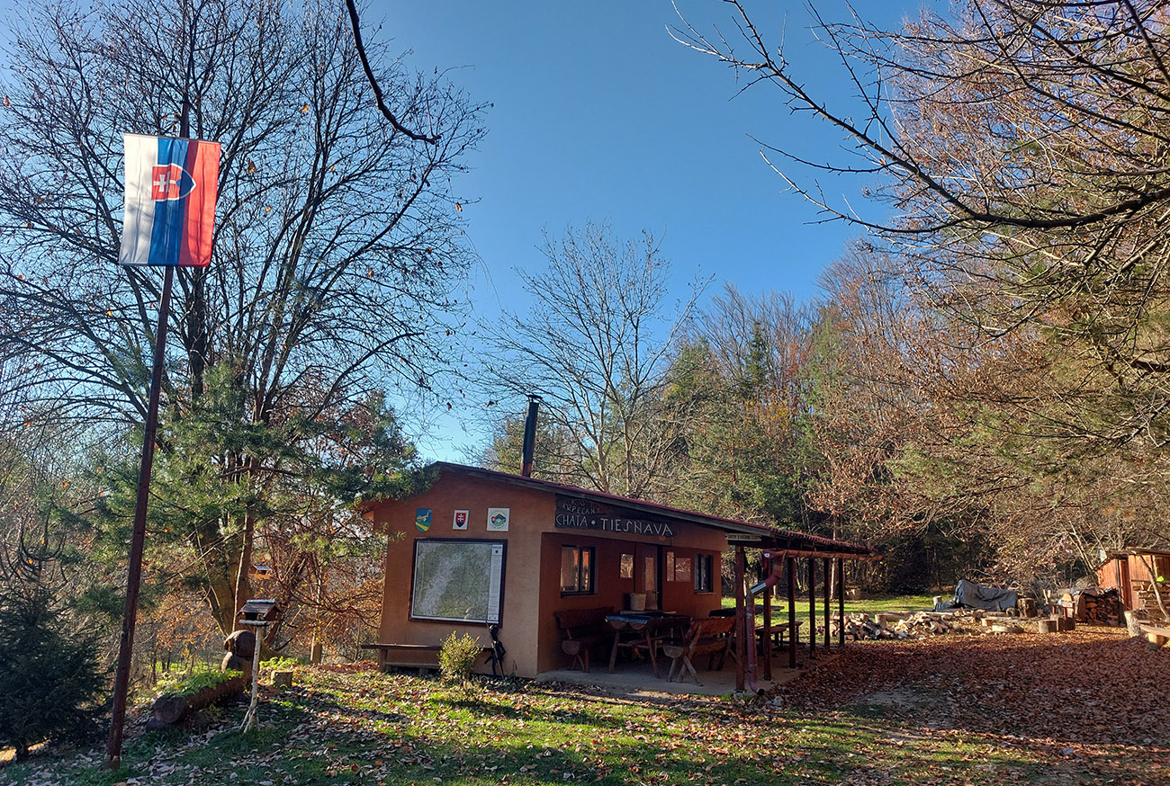 Potom už nolčovský mostík cez Váh, ešte trochu šotoliny do Krpelian a nástup do poctivých kopcov, hneď za krpelianskou elektrárňou. Najskôr po žltej, potom kadejaké traverzy s občasným prekrižovaním turistických značiek - všetko dobré, suché, lesné cesty, len škvrčanie šotoliny už väčšinou nahradil šuchot lístia. Čím vyššie, tým teplejšie, teda aspoň na južných svahoch. Na opačných námraza.