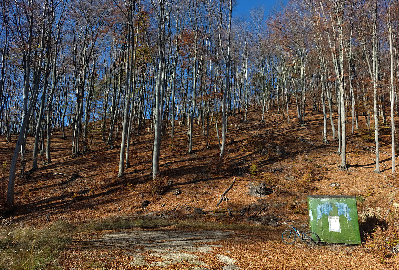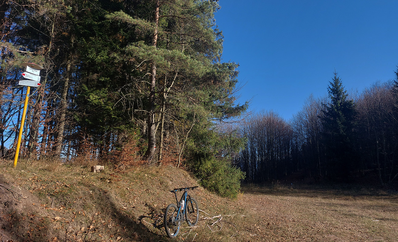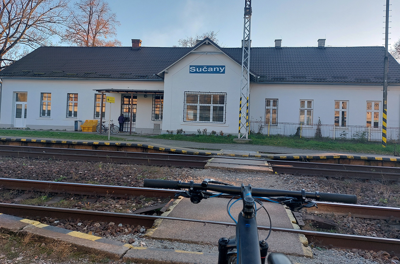 No nevedel som, či druhý novembrový víkend nebude zároveň posledný tohoročný, vhodný na serióznejšiu mtb-turistiku. Lebo potom malo trochu zapršať, tak že už to do jari neoschne, len zamrzne. A po blate sa mi v tej kose moc jazdiť nechce. Inverzia už zariadila aj nočný mrazík, tak som čakal vari do deviatej, kým slnko ako-tak ohreje svet. Ani sa mi nechcelo niekam ďaleko, tak že pohľadám nejaké nové cestičky na domácom ihrisku. To sa mi už často nestáva, no teraz nastala príležitosť. Lebo námet som dostal cez týždeň cestou do roboty (vďaka). Cesty pod Kopou síce zhruba poznám, ale vždy len tak pri ich križovaní pešo po turistických značkách. Nikdy sa mi nechcelo na bajku sa k nim trepať, z domu po rovine. No teraz som mohutne zapojil plánovanie a vyšlo niečo takéto, zauzlené. Natiahol som to od stanice v Sučanoch (GPX je hore), ak by niekto náhodou... Aj keď teda z vlaku je to pod Kopu samozrejme bližšie z Krpelian: