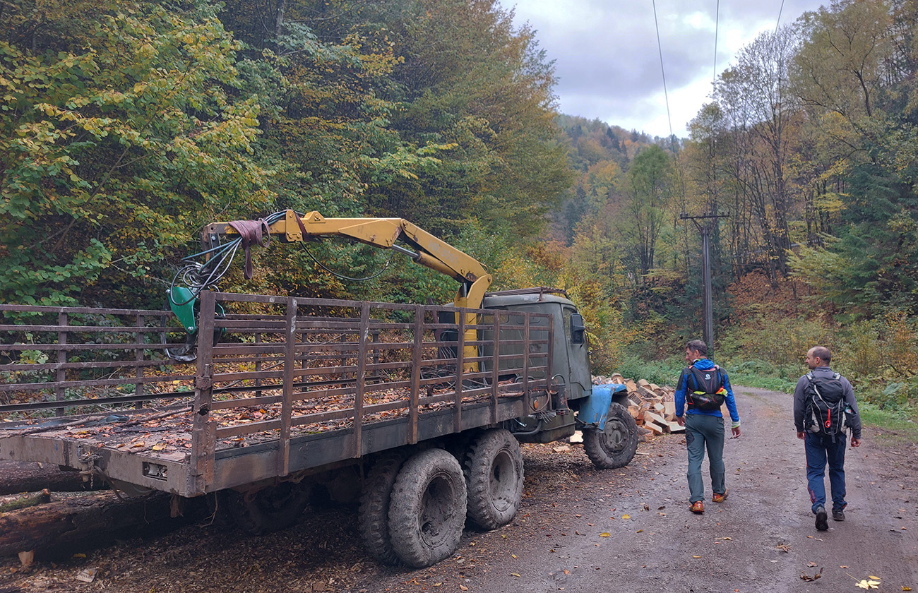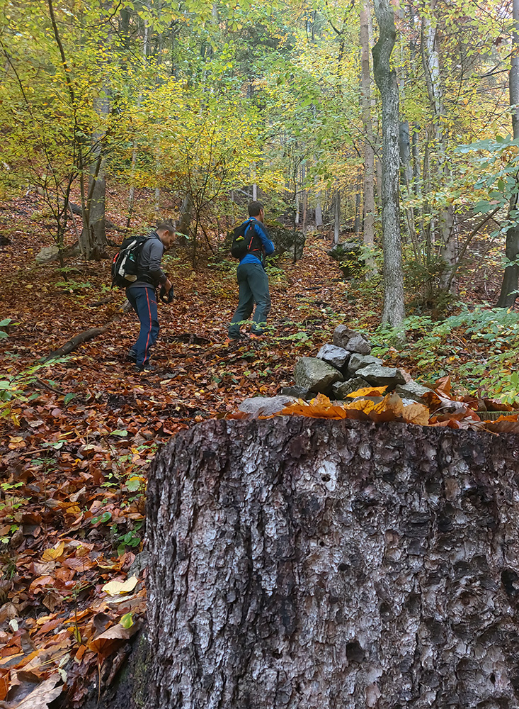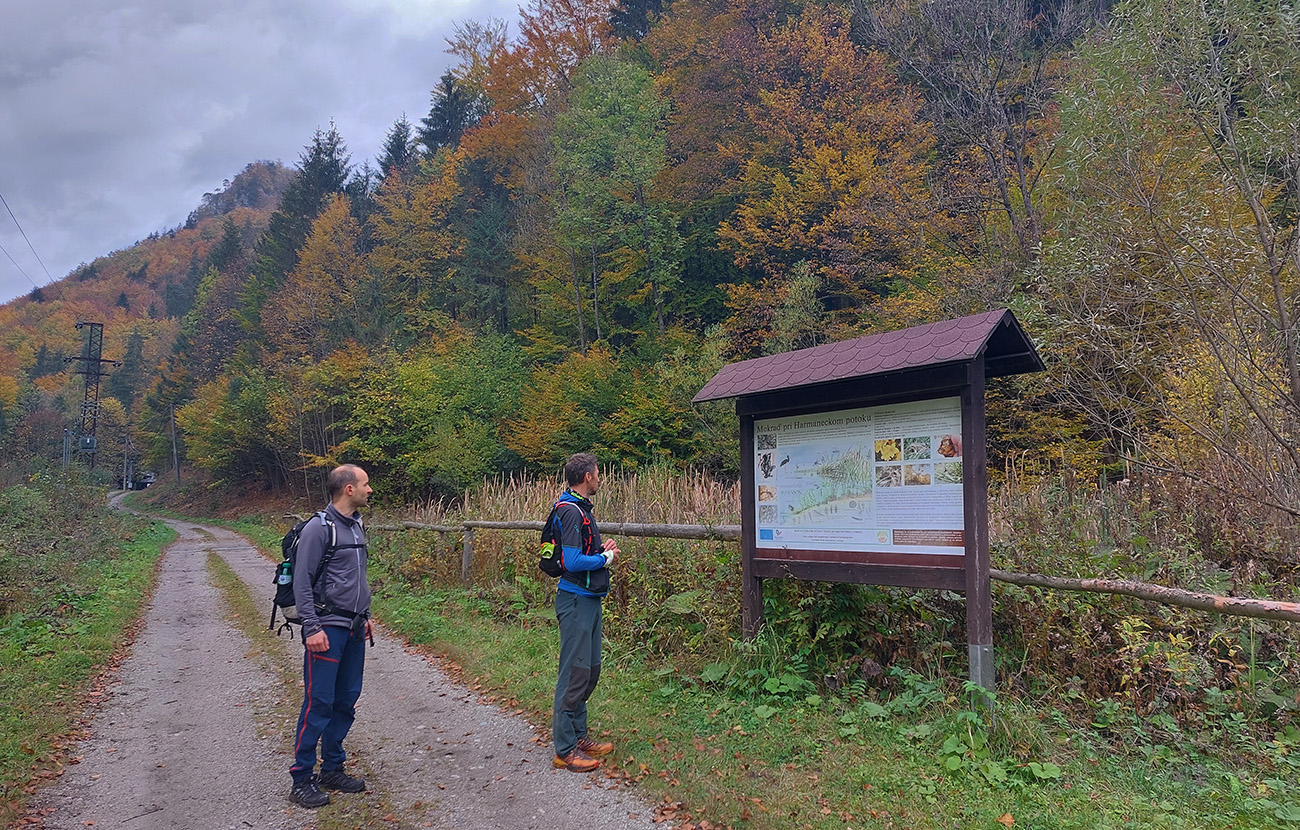 Využívame povinnú „služobnú cestu“ do BB a po vybavení nutných povinností (raňajky a tak...) sa traja vezieme na „redakčnú poradu“ z mesta na sever. Mohli sme byť štyria, ale „slečna dopisovateľka“ nás ohrdla a uprednostnila rýpanie v zemi na záhrade, tak jej treba... Parkujeme pri lesnej správe nad Dolným Harmancom, v spoločnosti ťažkej lesnej techniky a starého, obézneho retrievera, ktorý najskôr paroduje pokus o zaháňanie votrelcov štekotom, ale potom by sa nechal aj ukradnúť. Je to prítulná mačka, nie pes :-)