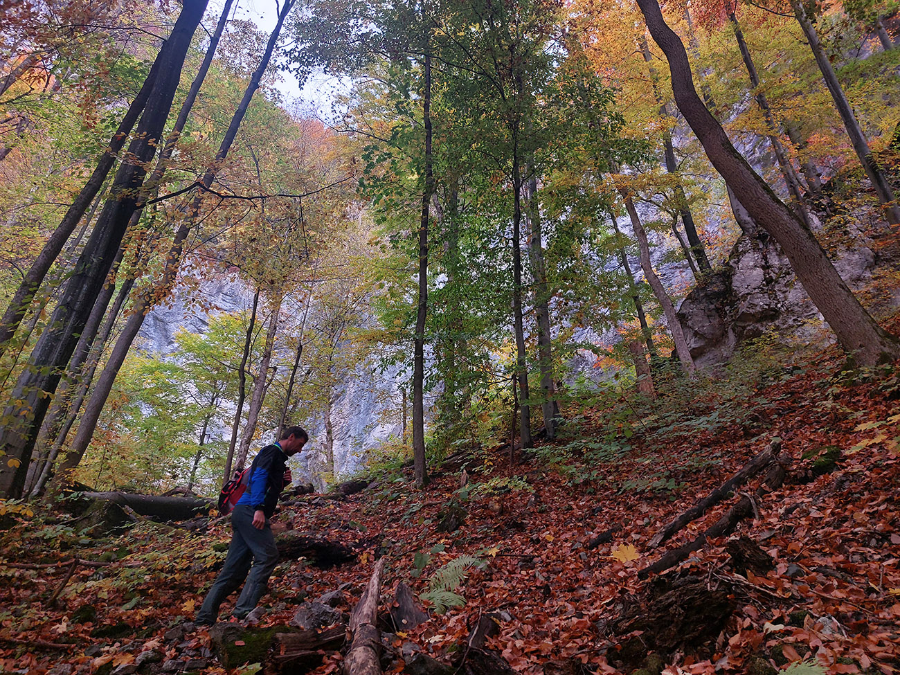 Sto rokov chodím vlakom z Turca do Banskej Bystrice, sto rokov z neho obdivujem skalné steny nad Bystrickou dolinou (medzi stanicami Harmanec – jaskyňa a Dolný Harmanec) a sto rokov si hovorím, že sa na ne raz pozriem zblízka. Tak konečne prišla príležitosť, posilnená reportážou v telke, kde aj prístupový chodníček ukázali. Jeden z vari troch – lebo je to síce v národnom parku, ale podľa stôp po ťažbe dreva je to zároveň v intenzívne obhospodarovanom území, takže nejaký pohyb mimo chodníkov nás absolútne nemusí trápiť. A navyše je to oficiálne a celoročne povolená lezecká oblasť. Podľa tej reportáže relatívne mladá, ale asi tam už Gipsy s Janom Bankom za svojich mladých čias nejaké cesty naťahali. Podľa portálu climb.sk je tam deväť sektorov so 188 cestami, prevažne od 6 do 10. Nájdu sa aj jedenástky a päťky, dokonca zoznam obsahuje aj jednu štvorku. Veľa je toho pod prevismi, takže sucho aj za dažďa.