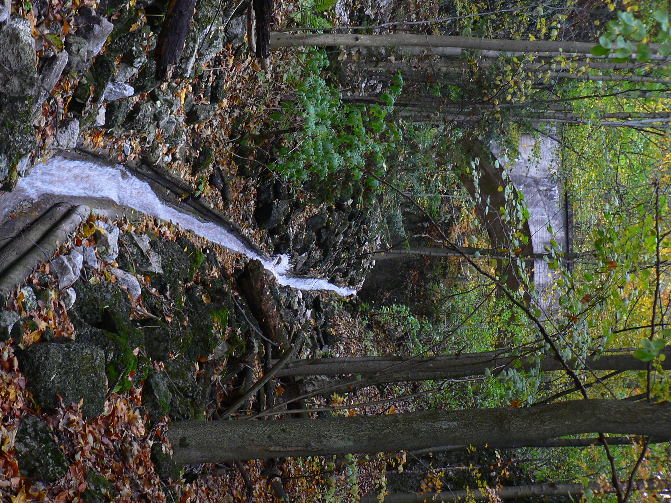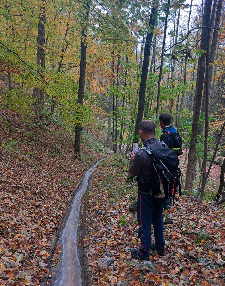 Z vyhliadky sa vraciame kus na sever a nachádzame starú lesnú cestu, ktorá mierne klesá traverzom, mení sa na chodník a neomylne nás privádza na horný okraj Harmaneckého vodného žľabu. Potom už, miestami čvachtajúc, miestami žľab preskakujúc, ideme popri ňom dole, obdivujúc skalky, lesy, žľab samotný, ale aj traktoristu, usilovne miesiaceho blato a ťahajúceho kmene. Ešte pred nami prehučí cez Grehelské tunely jeden rýchlik, poskúšame, ako to drevo dole žľabom letí (tomu sa hovorí detská radosť), dole v studničke poumývame ruky a popri elektrárni, peknej mokradi a odparkovaných miestnych endemitoch Praga V3S uzatvárame okruh a ideme druhý raz poškrabkať mačkopsa. Sľuboval som síce aj salamandry, ale asi už bolo pre ne zima, tak len tá jediná, na ceste zabitá, sa vyskytla. No nič, nabudúce, aj tak fajne bolo...
