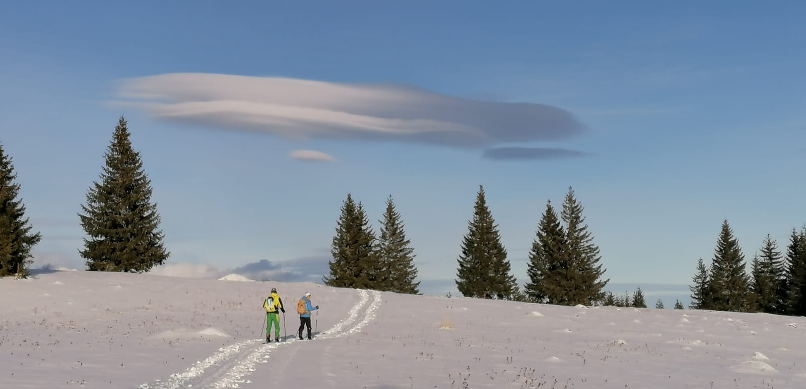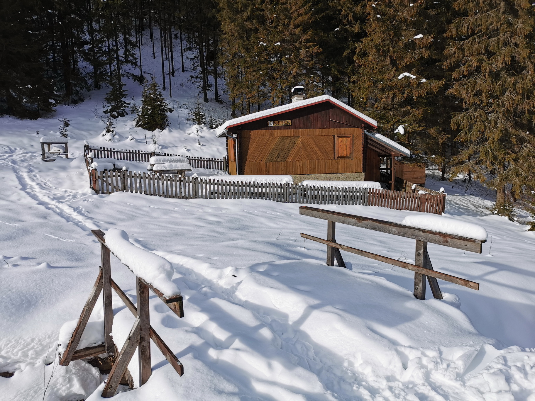 Dnes už sa v Liptovskej Tepličke konečne lyžuje opäť, dokonca na dvoch miestach v od seba nezávislých strediskách. My sa ale nejdeme lyžovať na vlekoch, parkujeme začiatkom zimy na veľkom parkovisku pod lyž. strediskom Smrečiny s cieľom zašlapať si na prvom snehu zimy. December začína dobre a tak šlapeme popod lyžiarsky svah známou cestou vedúcu hore na lúky pod Panskou hoľou. Cesta vedie lesom dolinkou zarezanou v severnom svahu a tak snehu sa tu darí už začiatkom zimy.