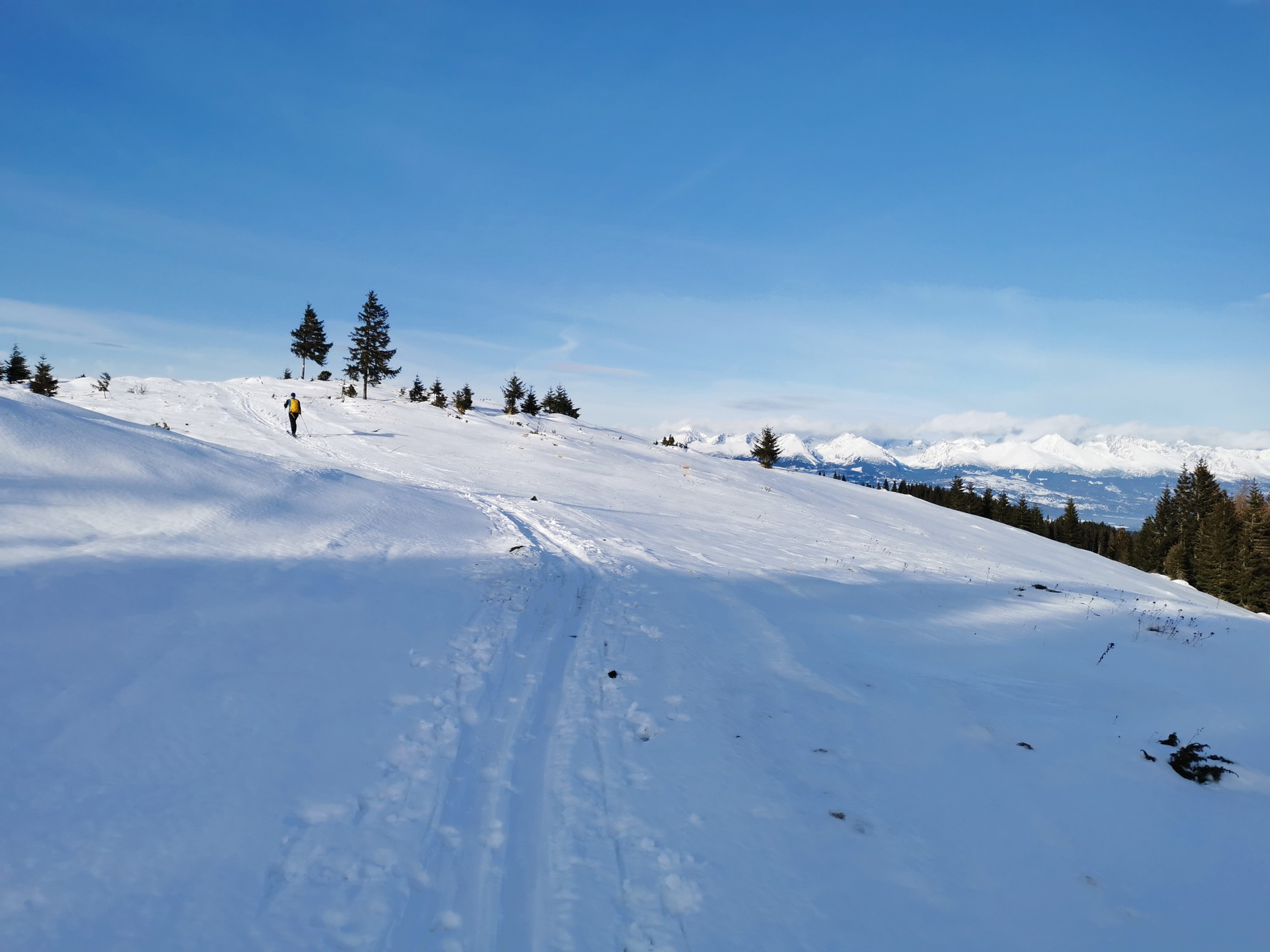 To sa už ale preberám zo sna a za neustáleho parádneho výhľadu na Tatry dávame dole pásy a lyžujeme späť po ešte neupravenom svahu lyžiarskeho strediska dole na parkovisko až ku autu. Znalci už o tomto mieste vedia, je to veľký kontrast oproti Tatrám na ktoré sme mali zhora pekné výhľady. Pre ľudí ubytovaných v tatranskom podhorí je Teplička výbornou alternatívou ku kolóne áut vedúcej do Tatier ;)
