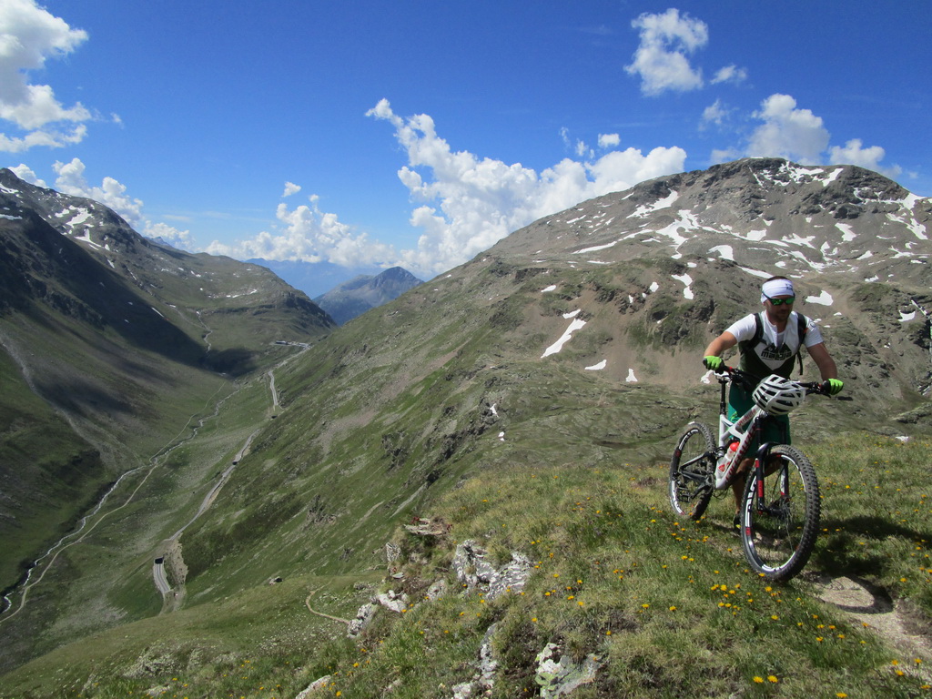 Bajkovou šotolinovou cestou stúpanie na passo Forcola. Odtiaľto traverzom po novom singltraily (fotka) až do sedla Minor kde začína zjazd rovnomennou dolinou ku dolnej stanici lanovky na Lagalb. Tento zjazd je krásny a náročný, na svoje si ale prídu všetci lebo počiatočné kamenisté pasáže v dolnej časti vystriedajú rýchlejšie úseky po hline a tráve. Viac už vo videu.