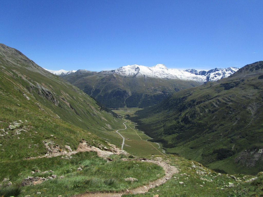 Následuje nekonečná Val Chaschauna na hranici Šv. národného parku. Potom sa už napojím na asfaltovú cyklotrasu vedúcu popri hlavnej ceste Engadinu a dostať sa čo najľahšie naspäť odkiaľ som ráno vyrážal: do Val Rosegu.