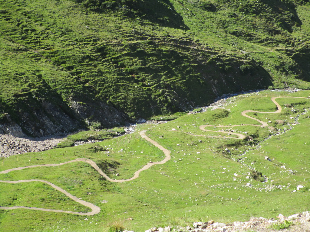 Parametre trailu sú veľkolepé, cca 450 v.m. a vééľa kilometorv. Na strave sa dozvedám info, že tá sranda vraj stála pol miliona frankov... Do doliny sa dostanete na bajku a ani sa moc neunavíte. Úplne mi stačil hardtail. Až keď som z nového trailu nabehol na starý chodník vedúci pasienkami tak som pocítil, že s pružením by to predsa len išlo lepšie.