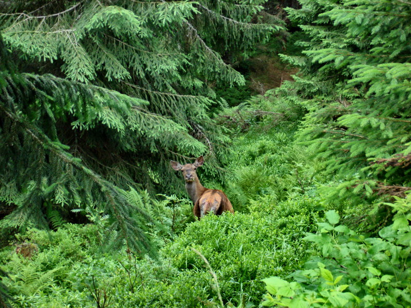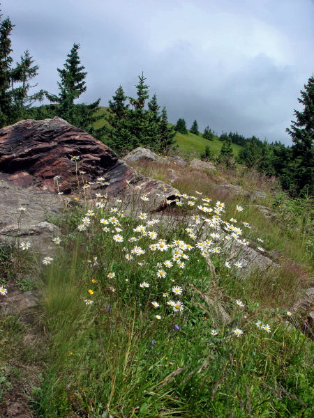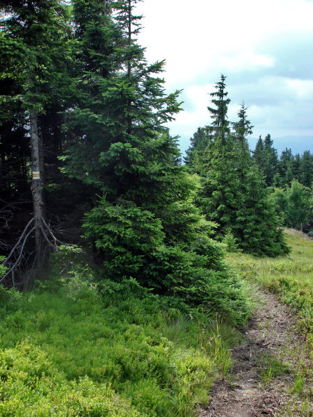 Prevažne trávnatý hrebeň pohoria, dáka kosodrevina, kravy, muchy. Zostup stále po žltej vás privedie na sieť zvážnic, lesných ciest alebo chodníčkov, ktoré ich často križujú, okolo poľovníckej chaty, cez Vrchstudienku až do Príslopskej doliny, kde sa k úzkemu chodníku pridáva potôčik a papuľujúce veveričky. A ste dole.