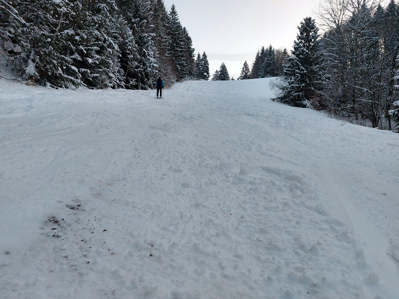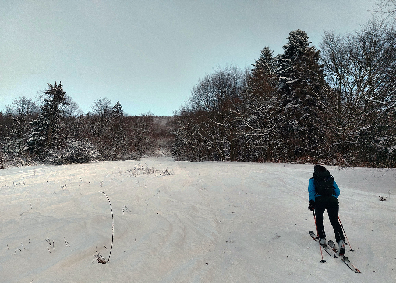Lysec (v pondelok z Lehoty): vrcholová lúka parádna, vždy tam niečo trčí, ale to len tráva a krtince a rozlyžované je to už tak, že čo trčí, to vidno, a čo nevidno, až tak nevadí. Zarastajúca lúka pod Poľkou to isté, len väčšie bubny, bezpečne sa dá otáčať aj brzdiť na nahrnutých kopách snehu. Traverzová cesta najistejšia opatrnými oblúkmi, zákernosti občas v strede. Najhoršie je to pod jej serpentínou, lebo strmšie, ale aj tam sa opatrne, najmä po okrajoch, dá. Potom na lúkach dobre, opatrne treba len v lesíku medzi nimi, lebo dobre nevidno, či na snehu leží kameň alebo lístie. Prekvapivo fajný je odjazd doprava po lesnej ceste na spodnú zjazdovku na Lehote, netreba tlačiť do kopca na Medzijarky. Na zjazdovke pekne vidno, čo je kde odkryté. Pohoda.