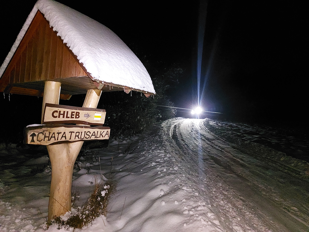 No kedy sa má poctivý robotný ľud v týždni dostať na pásy? Len po robote. Takže teraz rovná sa za tmy. Ale „na tri krále o krok dále“, tak aspoň časť výšľapov za vidna sa zadarila, lebo štart z domu po tretej a do lyží skok o pol štvrtej, dajme tomu. V oboch prípadoch, len ten Lysec bol ešte pri -10 stupňoch a jasnej oblohe, pri výstupe na chatu pod Chlebom (lebo vyššie sme nešli) už popŕchalo a zahmlievalo. A každý, komu som sa pochválil, hneď sa pýtal, či sa to dá zlyžovať a či trčia kamene a či sa dá od parkoviska (DÁ!!!) a také tie klasické oné... A to som si myslel, že tam už všetci boli. No zjavne len polovica, tak tu je pre tú druhú polovicu pár fotiek a jednoduchý report o stave podkladu. Na ktorý sme síce moc nevideli (lebo čelovky), ale niekomu to možno pomôže. V oboch prípadoch je snehu tak dosť, že pri výstupe už netreba moc pod nohy pozerať, dôležité pre zdravie chlpatých lyží je to smerom dole. A dôležité ešte je aj to, že sme pod Chlebom obnovili tradíciu: