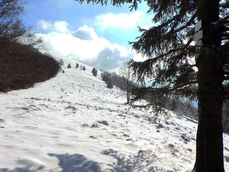 Tenká ľadová škrupina sa na zvážnici v Slávkovej doline ešte prepadávala – pod ňou blato. Na lúkach Žiarca by sa už dalo, aj zlyžovať, mimo lesa je snehu viac. Dokonca aj ratrakom naťahané pásy pre bežkárov bolo vidno pod čerstvým popraškom. Od hornej stanice vleku na Lehote je to až na Poľku po zvážnici a väčšinou v lese, takže zas máličko snehu, ale už je to vyššie, na výšľap stačí. Smerom dolu by to spod hrán napriek tomu iskrilo. Vrcholová lúka sa dá v pohode aj smerom dolu, lebo tu je popri lese nafúkaného a zamrznutého snehu dosť. Ale zas len na úzkom páse, inak tu tráva trčí ako v novembri.