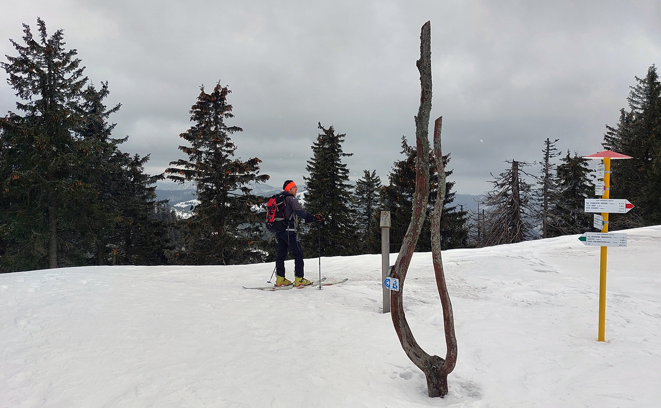 Vtáčnik je zlyžovateľný dole do jamy jediným spôsobom: od smerovníka po cyklotrase. Potom našťastie už všade snehu (ľadu) dosť, až pod Šiprúň. Len na jednom mieste v lese trochu štrku trčí, ale to sa dá komfortne obísť zdola popri tyčovom zimnom značení.